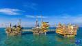 这是12月20日傍晚拍摄的渤海油田海上油气平台作业现场(无人机照片)。新华社发(杜鹏辉摄)