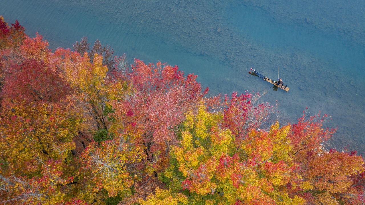 这里是楠溪江观赏枫叶的核心地区,层层叠叠的枫叶从翠绿转鎏金,再渐变为橙红、深绛,如同调色盘上的色彩被不经意间打翻,每隔几天树叶都会有不一样的色彩。徐永义 摄