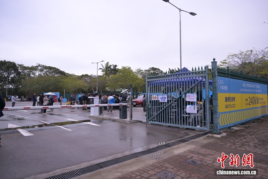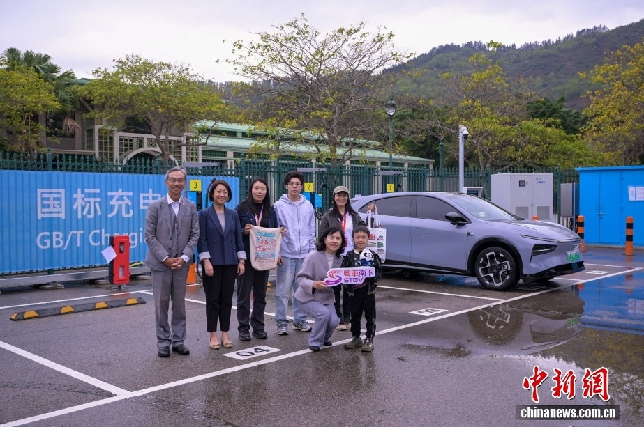 12月23日,香港特区政府运输署与中电源动集团合作在大屿山竹篙湾设立的充电设施正式启用,为“粤车南下”及“港车北上”旅客提供配套支持。图为大屿山充电站迎接首批使用者。中新社记者 陈永诺 摄