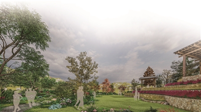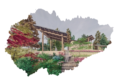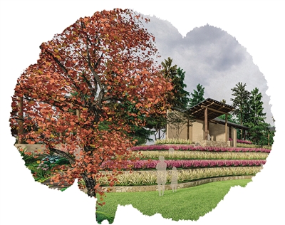 待到丽水园正式完工,人们将会看到,入口处,一棵树龄近百年的苦槠树静静矗立,这是在丽水村落常见的“风水树”。后侧一道绿屏随之展开,数棵苍松挺拔而立,错落有致。中间,是由两块天然石壁搭建而成的“石门洞”,穿行而过,视线豁然开朗,一个古朴的丽水古村映入眼帘。脚下将是开阔的花甸、草甸,花卉与草坪混合种植,形成一个四季皆可驻足、充满野趣的开放空间。与之相邻的,是引自山涧活水的荷花池,池中计划种植白莲,夏日可赏清荷风韵。