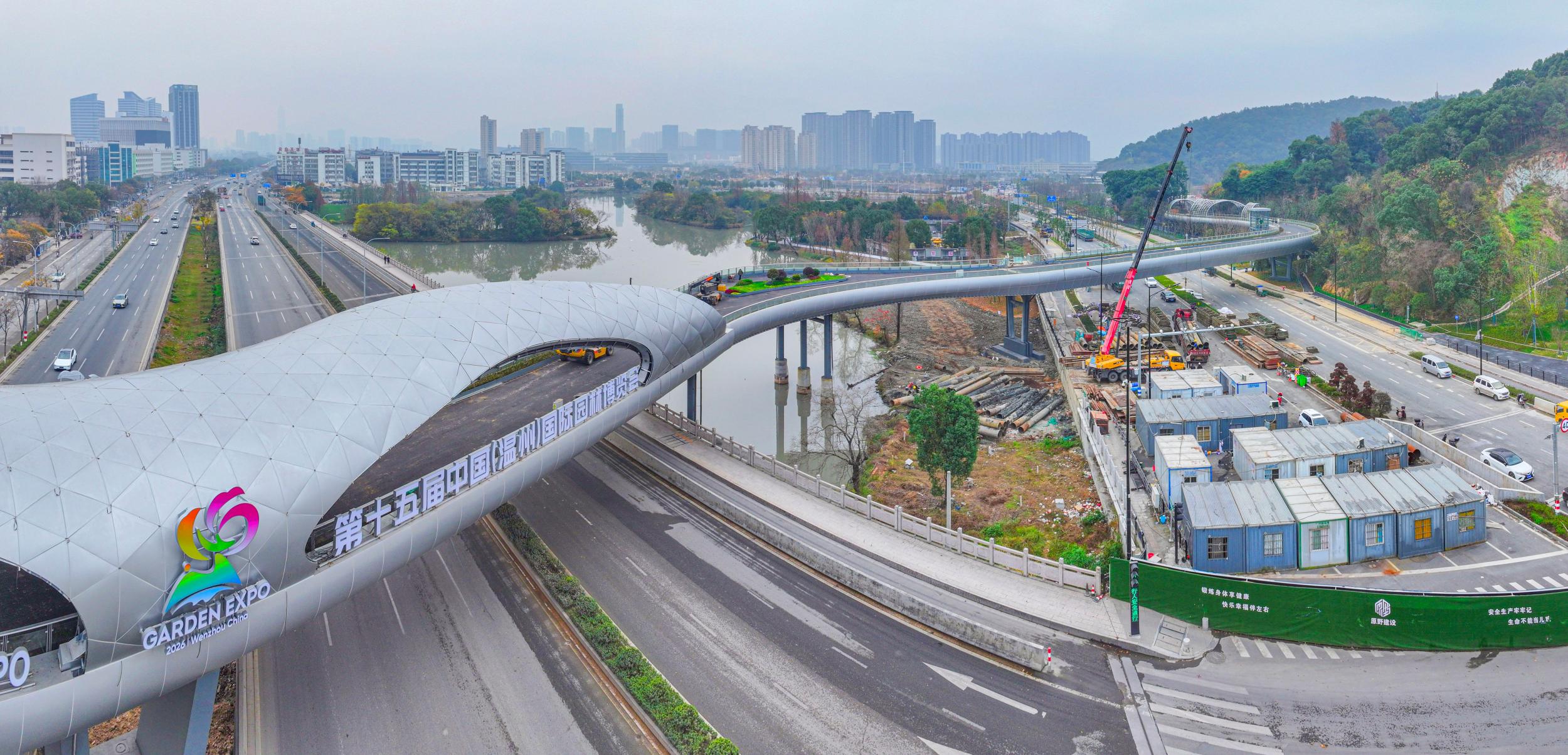 看风景的桥自己也是风景!连接园博园南北园的跨线桥完工