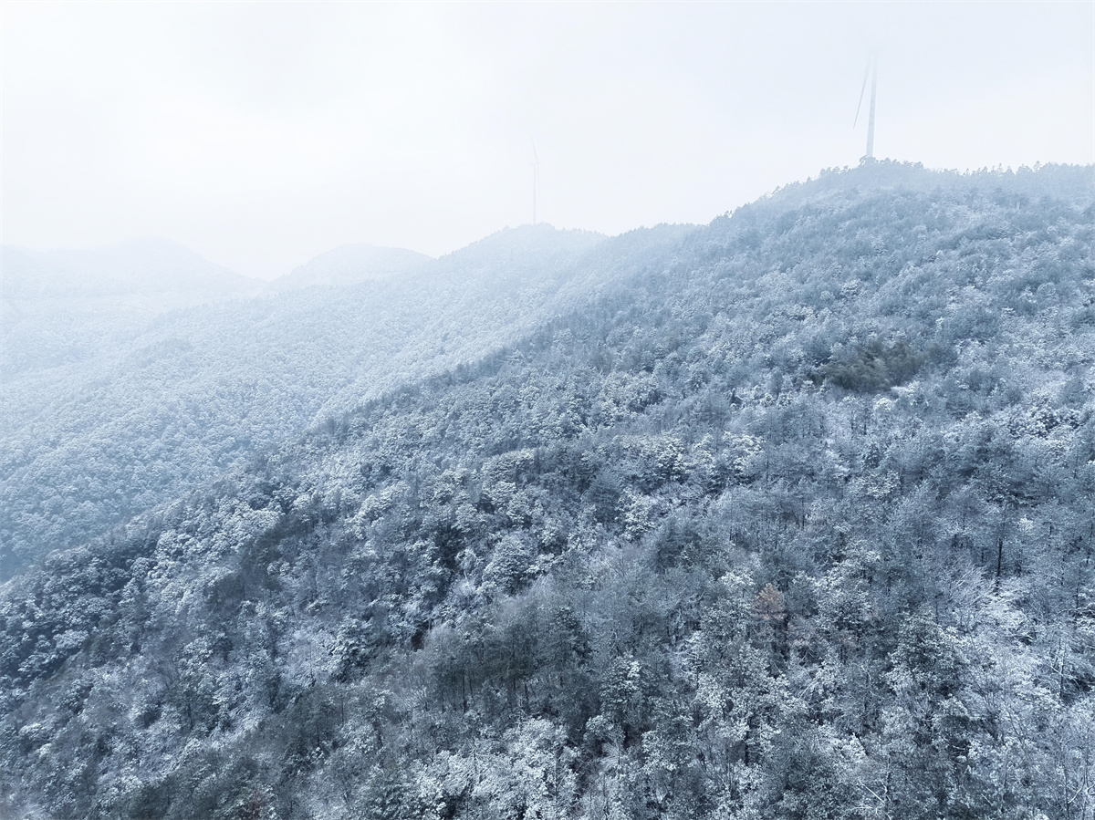 这里群山环抱、峰峦叠嶂,厚厚的积雪铺满山野,化作一片皑皑雪海。永嘉融媒记者 刘曦 陈凯