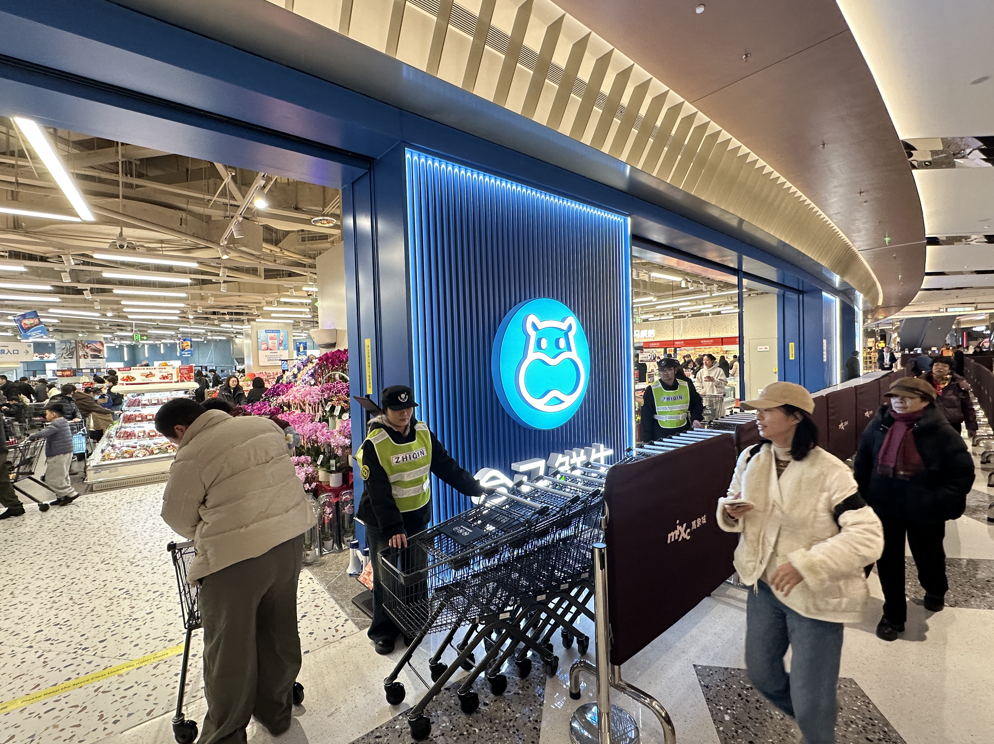 记者在现场看到,当天8点半左右,商店入口处已经有市民开始排队,他们一边拿着促销海报,一边研究待会儿的采购路线。现场的海鲜岛、烘焙区与进口水果货架等区域一度人潮拥挤。“之前快闪店我就囤了好几瓶苹果汁,今天终于能一站式买齐所有想吃的!”早早排队的市民徐女士笑着说。