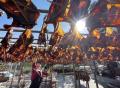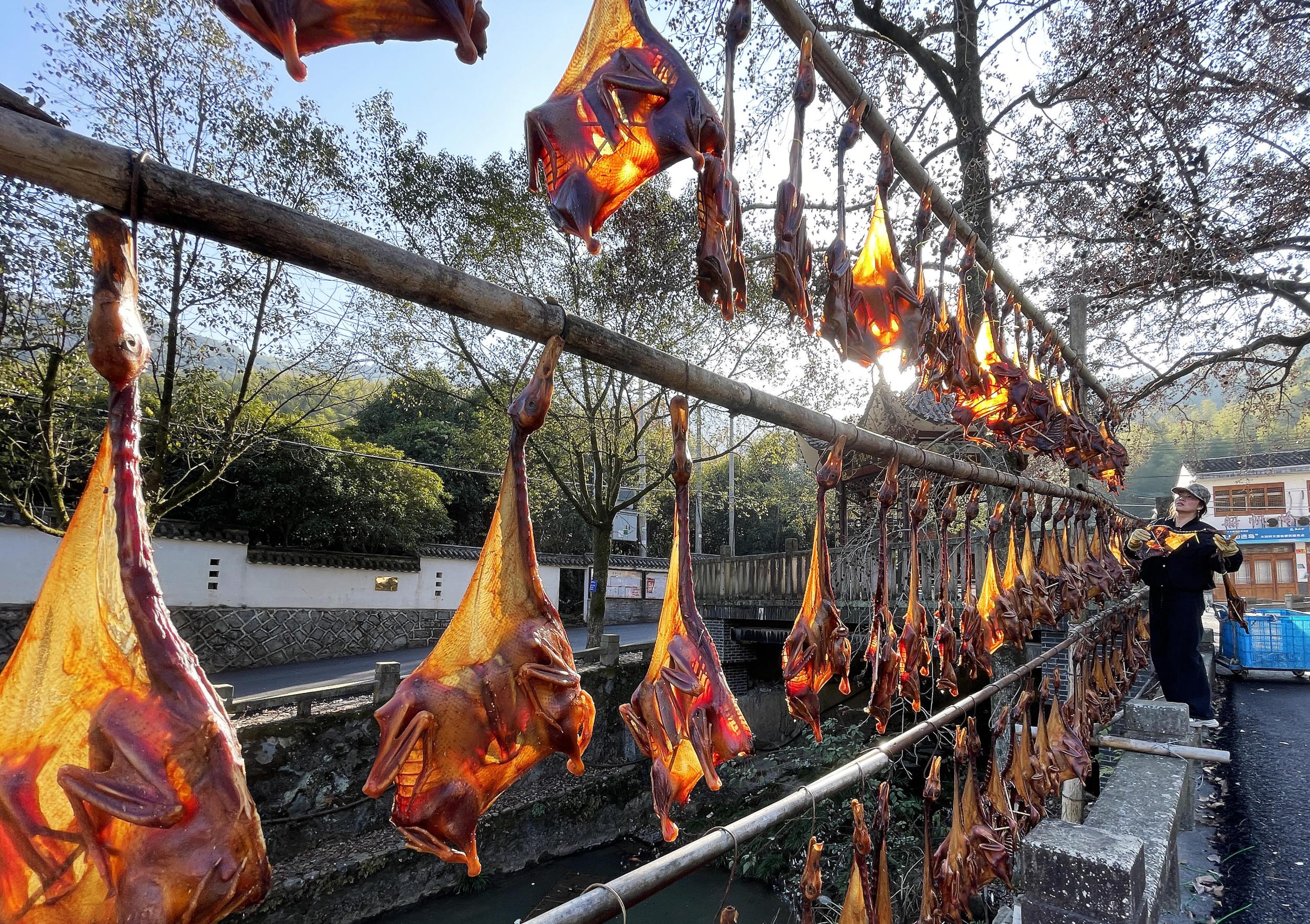 12月28日中午,位于温瑞塘河源头溪流的瓯海区瞿溪街道大岙村里,村民正趁着天晴,忙着晾晒温州传统年味美食酱油鸭。翁卿仑 摄