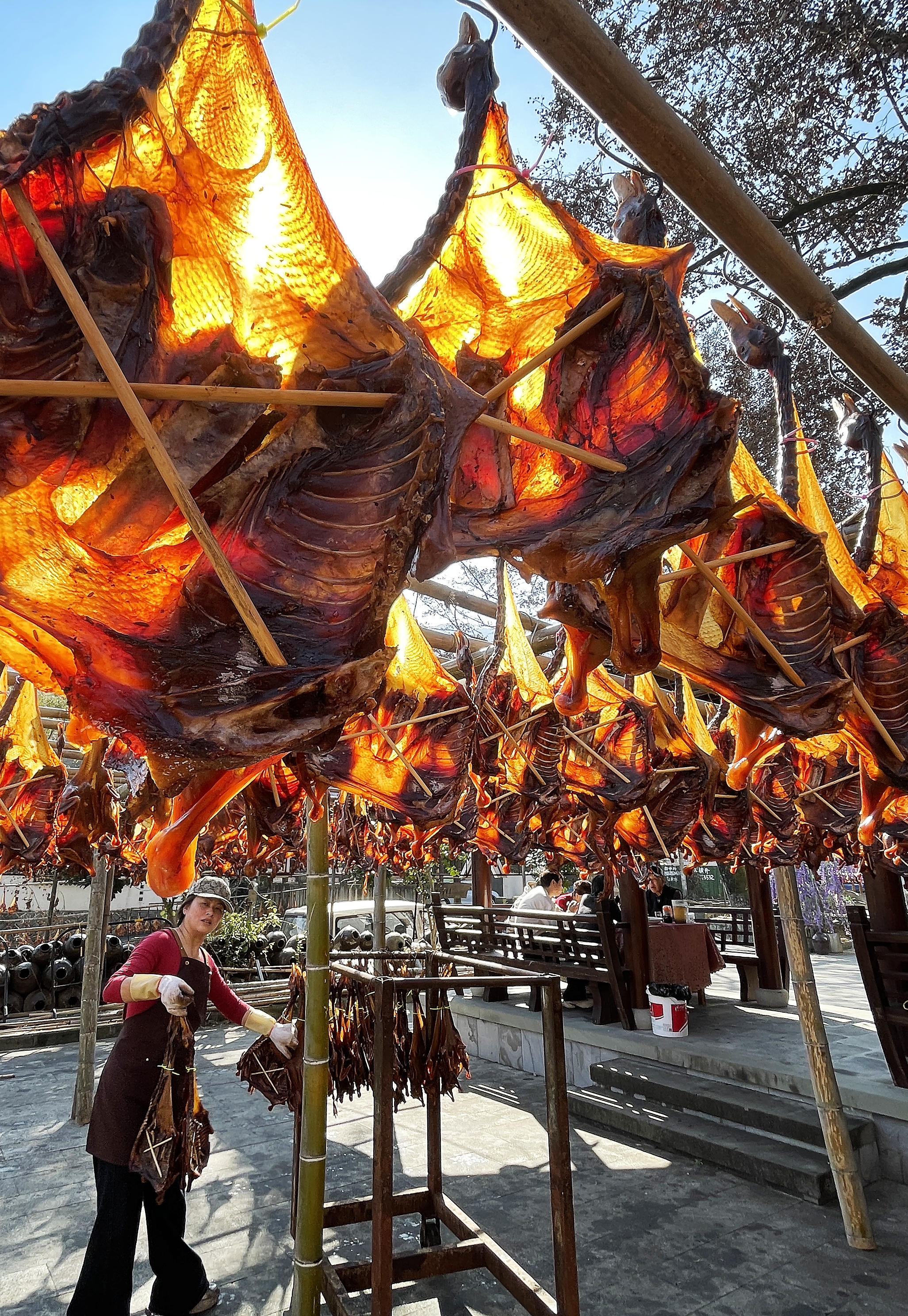 由于这一带生态优美、空气清新,近年每到冬日,便有市民源源不断向该村订购本村出产的酱油鸭、酱油猪肉等温州传统年味美食。翁卿仑 摄