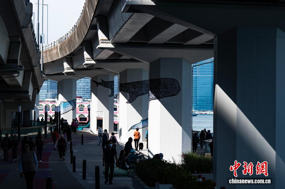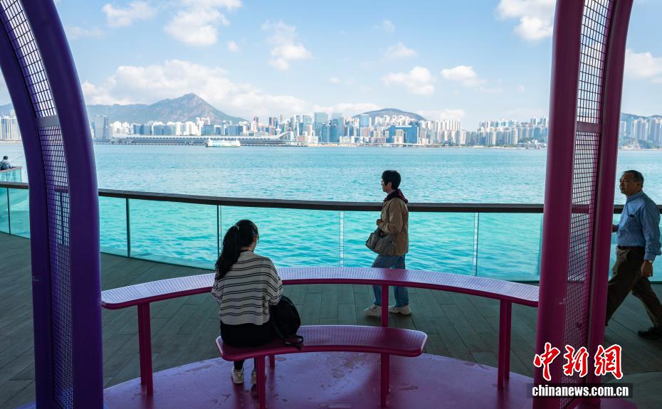 12月29日,位于香港北角至鲗鱼涌的东岸板道(东段)向公众开放,标志着由坚尼地城至筲箕湾全长约13公里的港岛海滨正式贯通。东岸板道(东段)全长约1.1公里,设有观景玻璃栈道、开放式多功能活动空间等,为市民游客提供休闲新去处。图为市民游客在东岸板道(东段)眺望海景。中新网记者 侯宇 摄