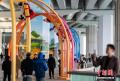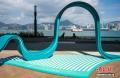 图为市民游客在东岸板道(东段)开放式多功能空间散步参观。