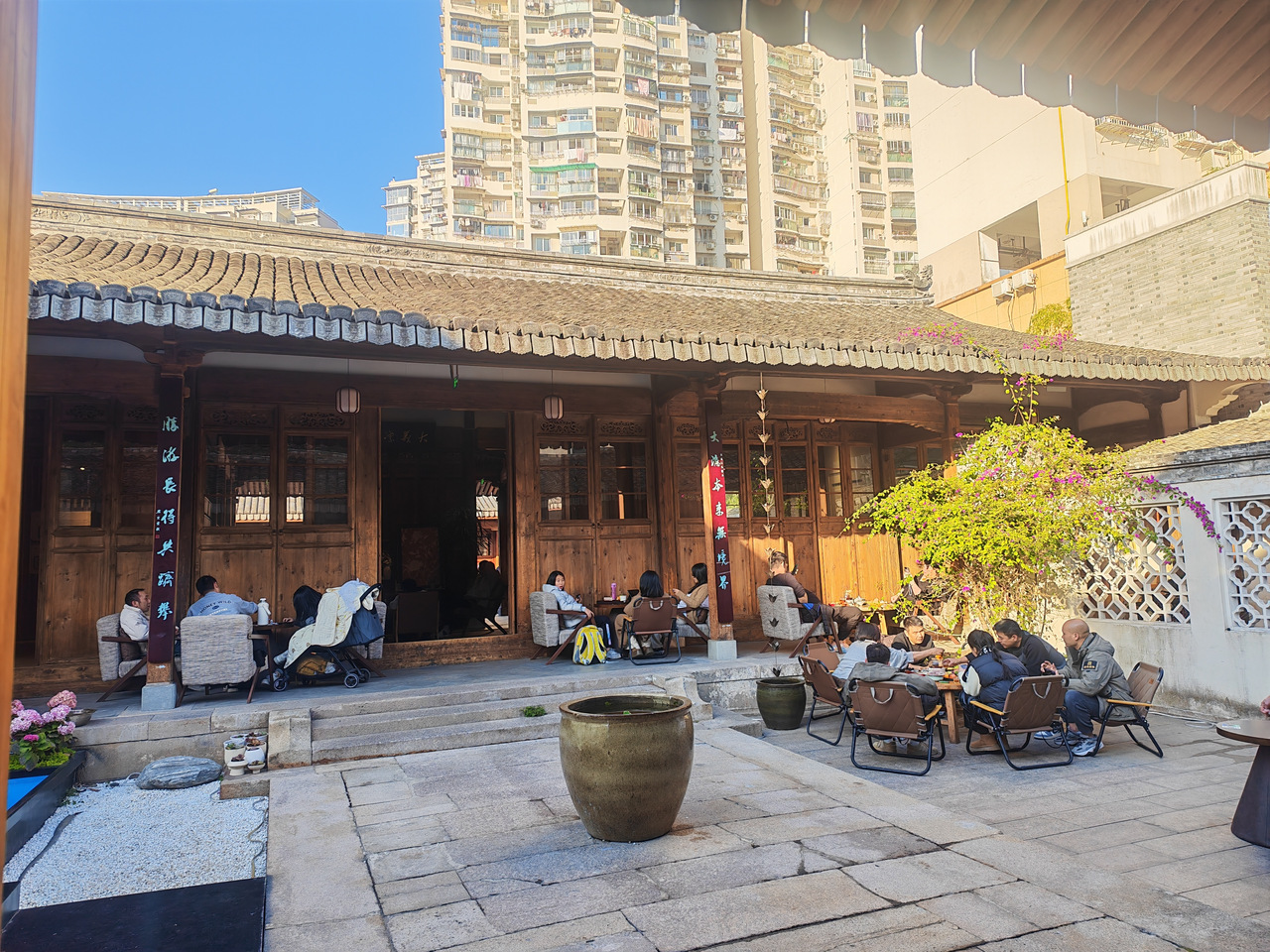 “欢迎来参观,不过喝咖啡或茶的位置已经全满了。”12月30日,温州市鹿城区徐定超旧居主理人刘士舜又一次在电话里婉拒了市民的预约请求。冬日暖阳洒在庭院里,茶香与咖啡香气交织,年轻人围坐聊天、办公,三三两两的游客在展板前驻足——这座曾沉寂百年的清末监察御史旧居,如今成了热门打卡地。“日均接待数百人,到‘监察御史家喝咖啡’这句玩笑话,已经火了一年多。”刘士舜笑着说。