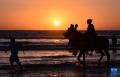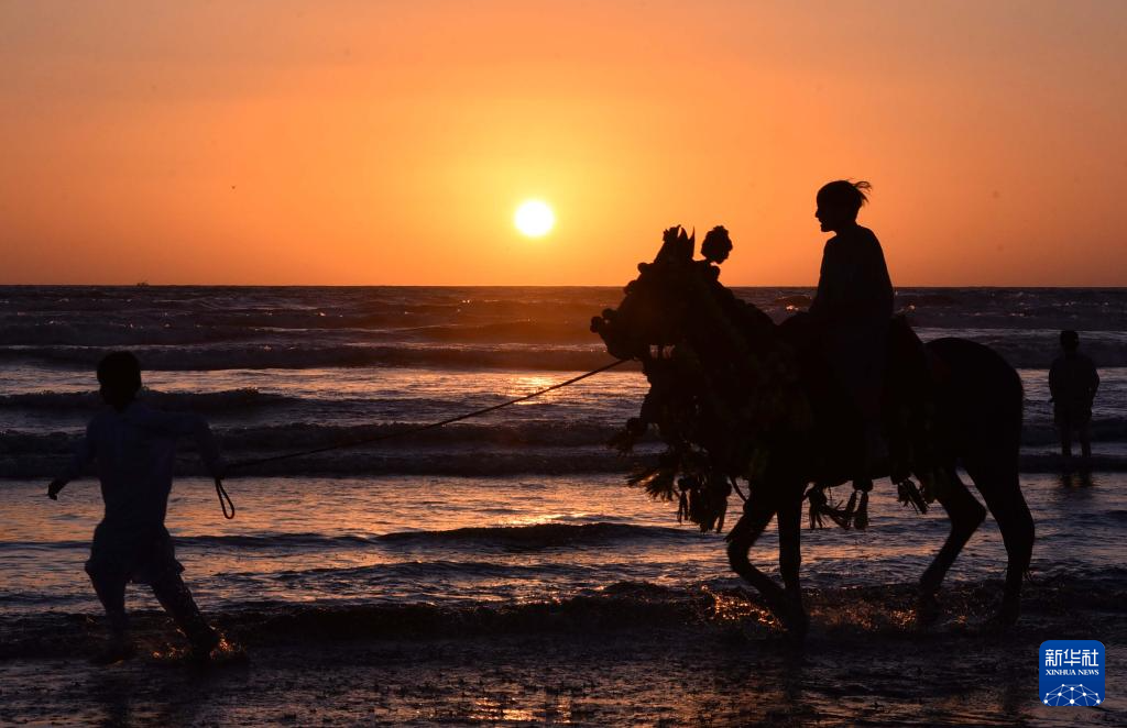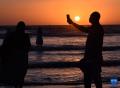 12月31日,人们在巴基斯坦卡拉奇海边欣赏2025年最后一次日落。