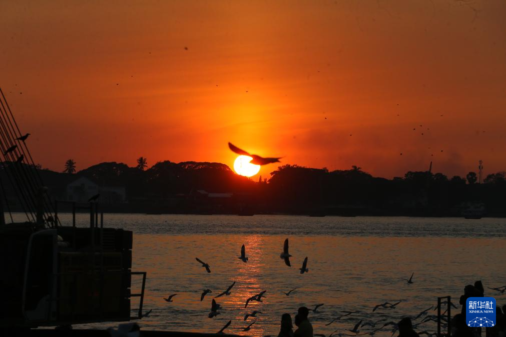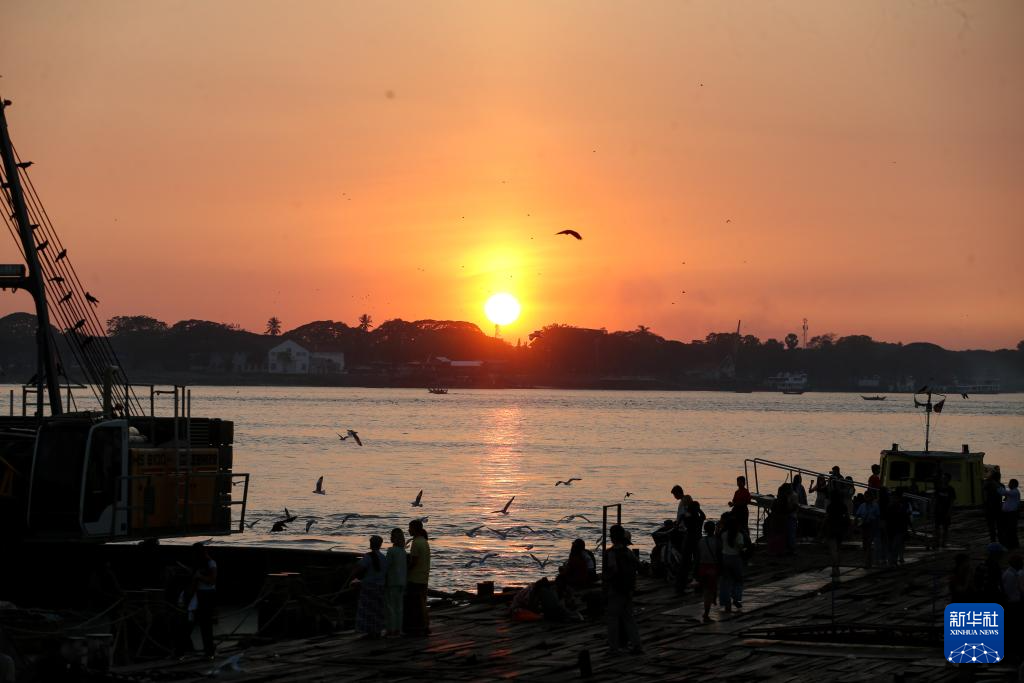 12月31日,人们在缅甸仰光欣赏2025年最后一次日落。新华社发(苗觉梭摄)