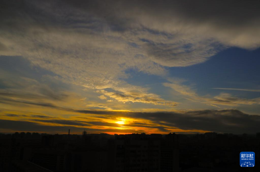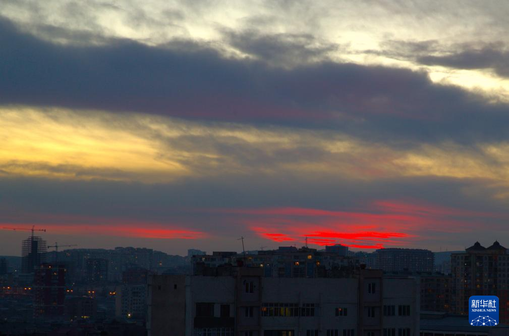 这是12月31日在阿塞拜疆首都巴库拍摄的2025年最后一缕落日余晖。新华社记者 陈俊锋 摄
