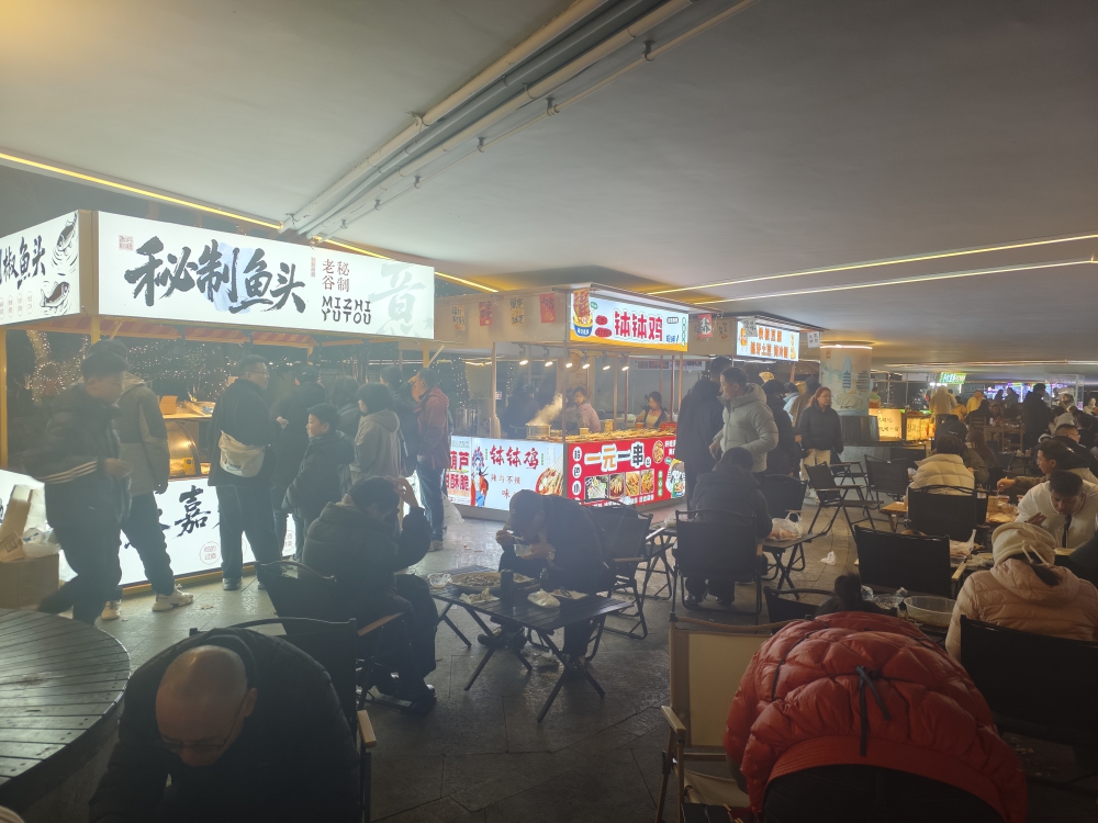 元旦假期,这里更是迎来消费热潮:在秘制鱼头摊位,每晚百余个鱼头早早售罄;在手打柠檬茶摊位,单日销量突破400杯……