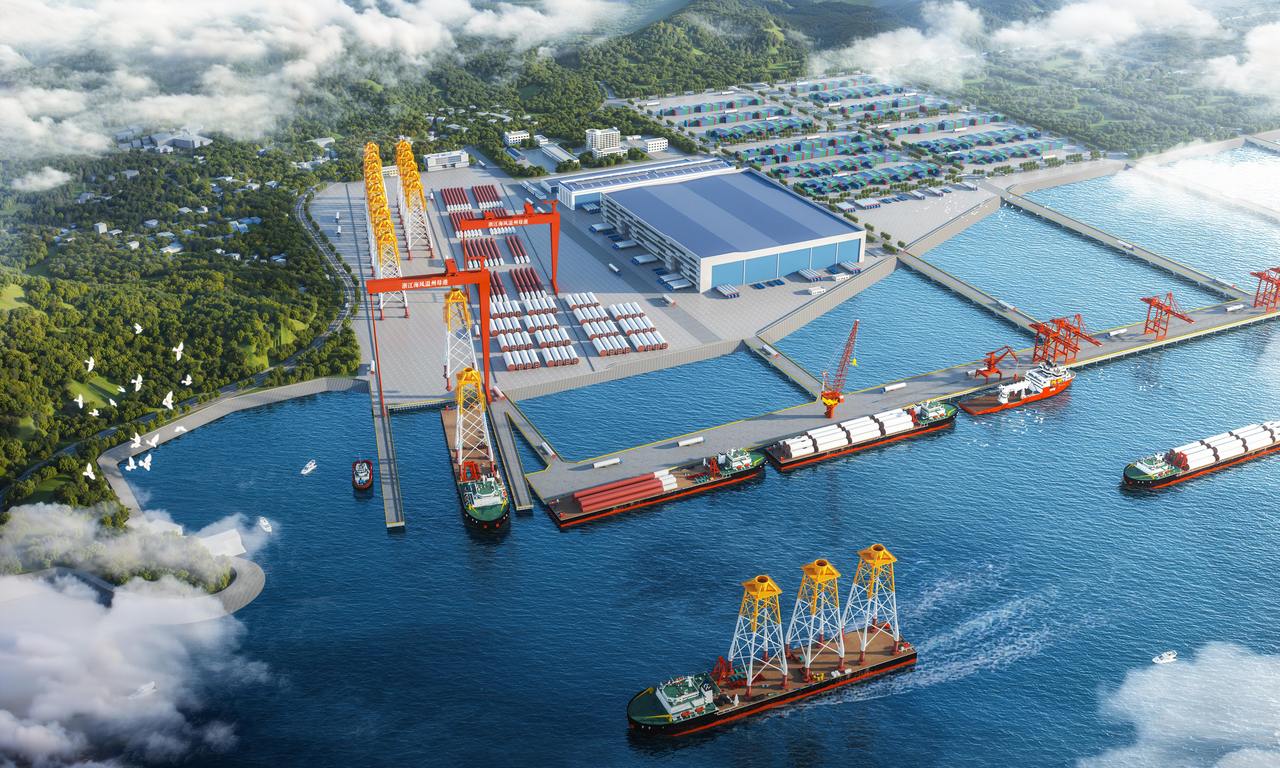 一公里外的洞头状元岙港码头,浙江(华东)深远海风电母港核心区项目建设正酣,600多名工人正在紧张作业,焊花飞溅,机械轰鸣声与海浪声交织成激昂的建设交响曲。目前,母港导管架生产区的桩基工程已基本完成,未来,这里将矗立起国内吊装能力最大的龙门吊设备,成为华东地区深远海风电装备制造、组装、运维的核心枢纽,为浙江海上风电高质量发展注入澎湃动能。