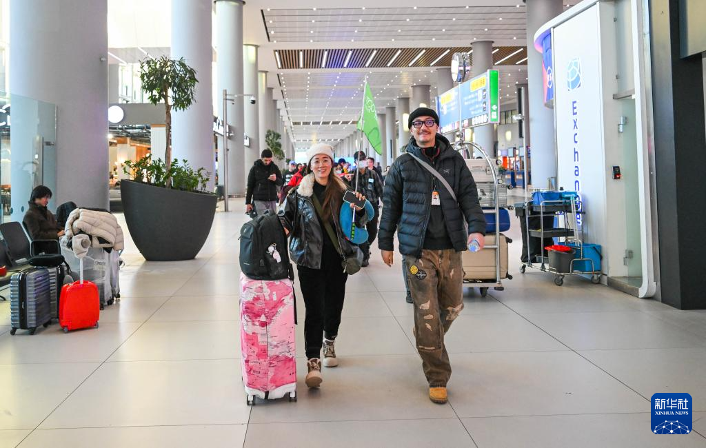 土耳其政府2025年12月31日宣布,自2026年1月2日起,对持普通护照的中华人民共和国公民实施免签入境政策。图为2026年1月2日,首批可享受免签待遇的中国游客抵达土耳其伊斯坦布尔机场。新华社记者 刘磊 摄