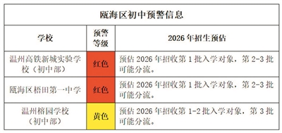 鹿城、瓯海发布2026年招生预警 15所热门学校统筹分流