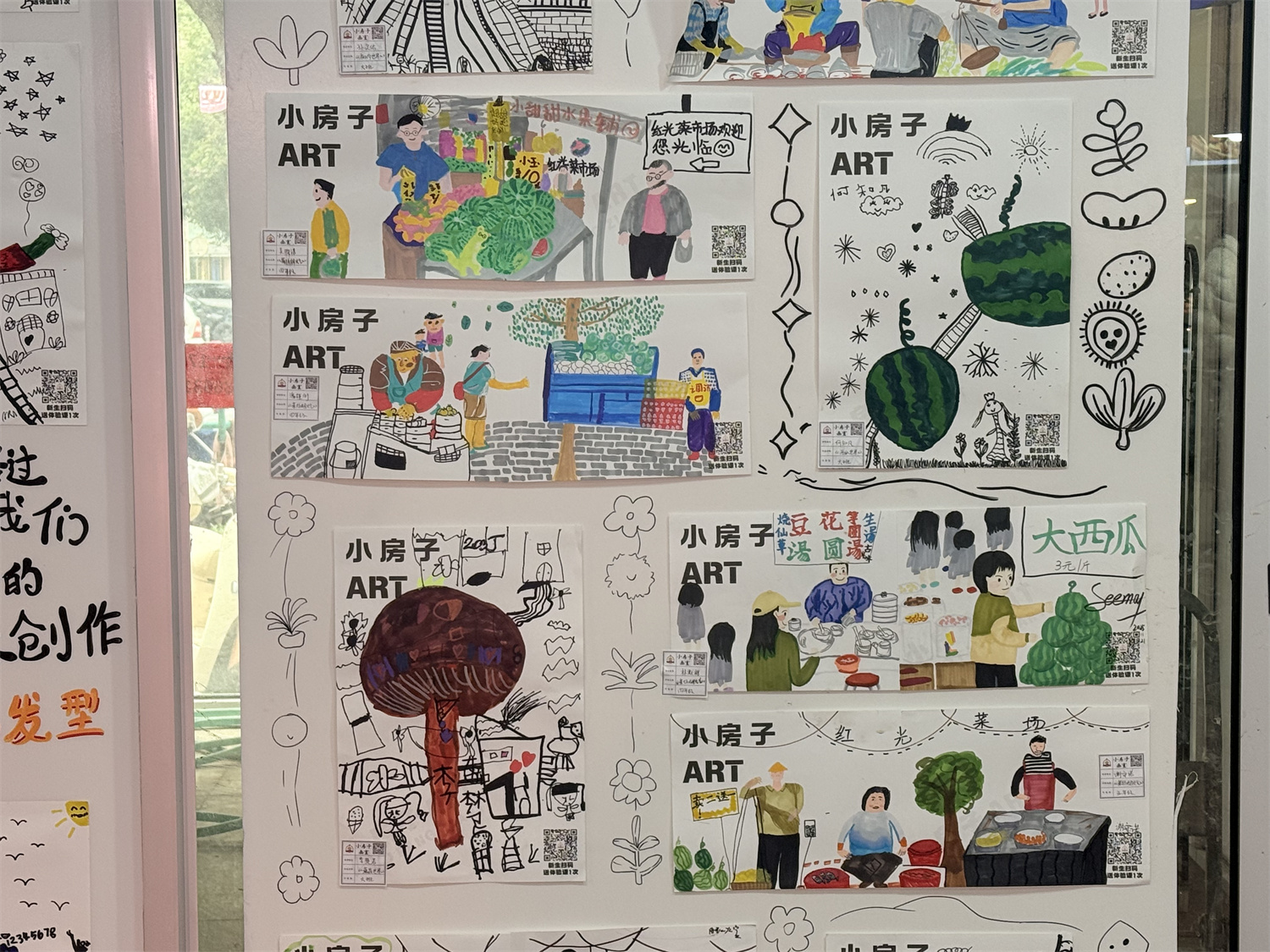 此次“菜市场里的艺术节”活动,特意面向附近学校、画室广泛征集学生优秀画作与手工作品。