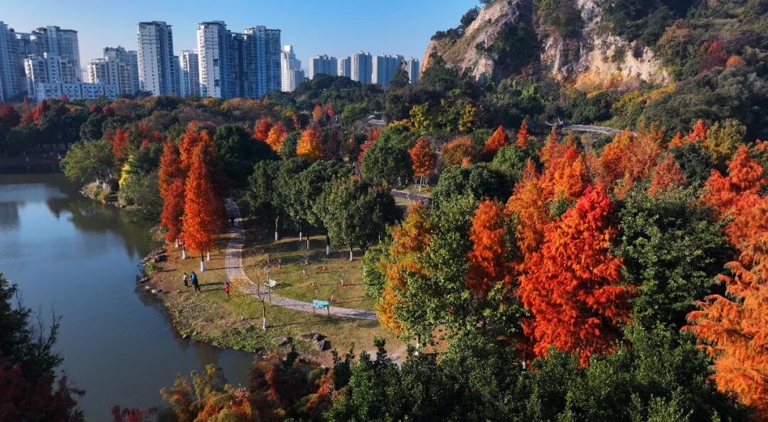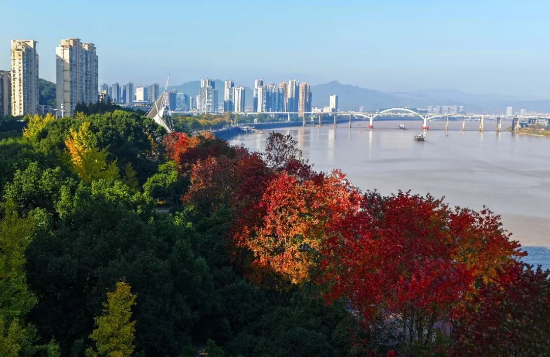 红黄相间,红褐相融,这些缤纷的色彩,在瓯江之畔、在公园步道、在街头巷尾,肆意流淌、交织碰撞,为冬日的城市注入了一种跃动的、绚美的生命气质。