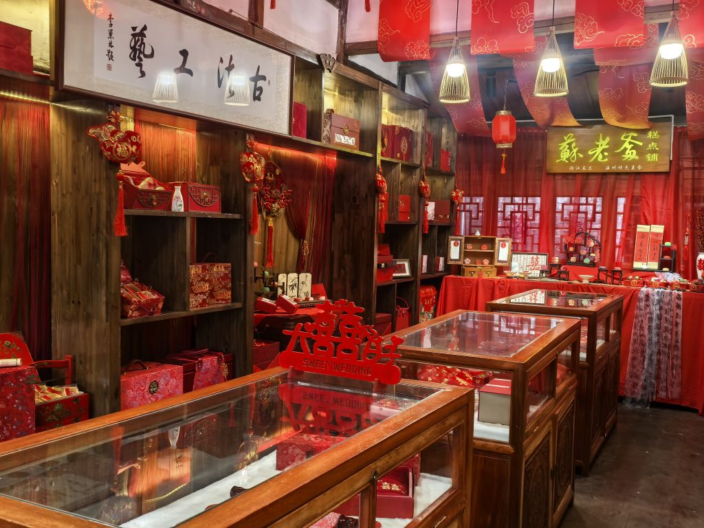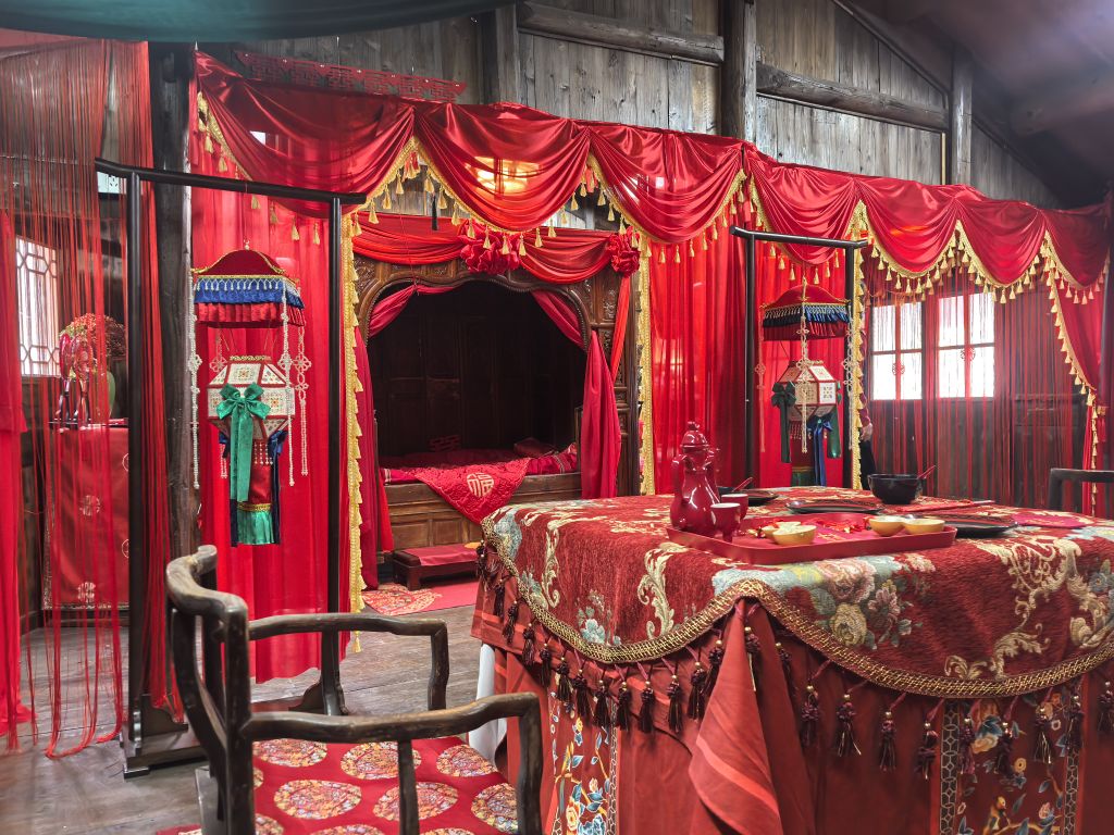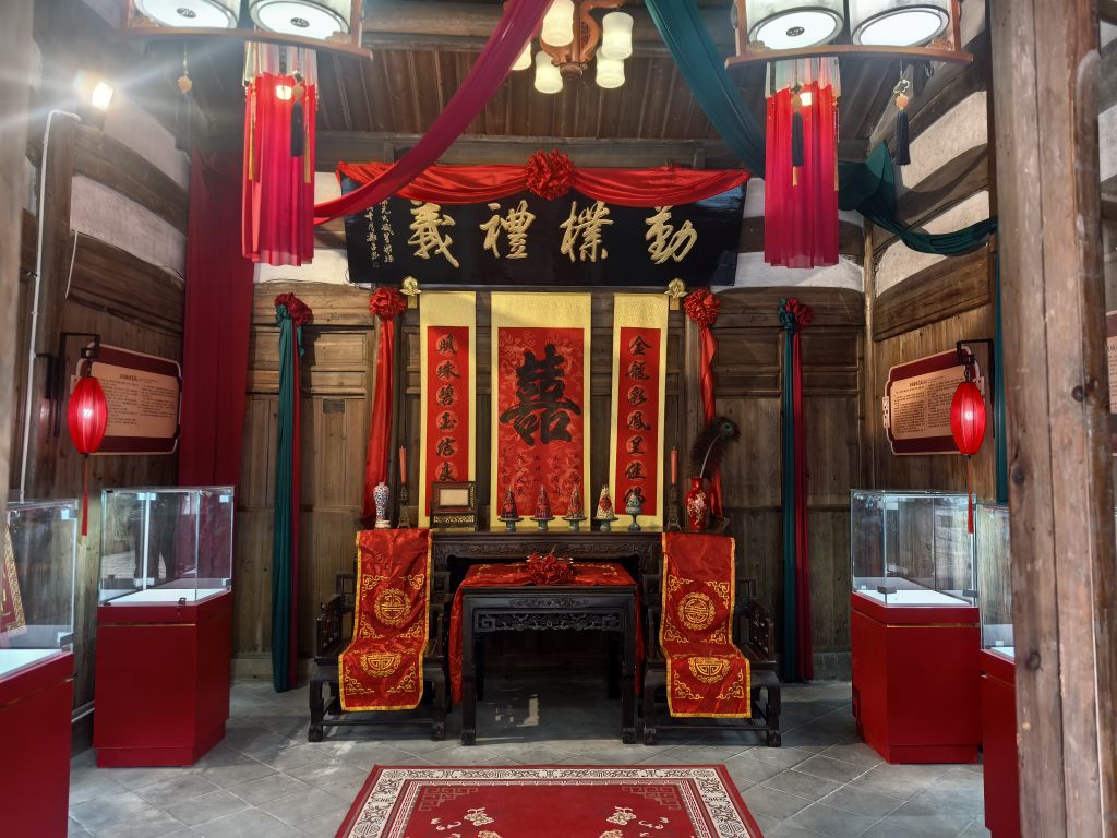 该馆以婚俗文化为核心,全力打造具有鲜明苍南本土地域特色的情感文化公共表达空间。全馆分为“馆外体验”与“馆内陈展”两部分,通过内外场馆联动,将实物藏品、文献资料与情境化展示有机融合。围绕婚俗文化演变与当代表达,馆内精心呈现了旧时金乡乃至整个苍南极具地域特色的婚礼用品、新婚盛装、拜堂场景、洞房设施等主题内容,构建起一条清晰完整的婚俗文化叙事脉络。