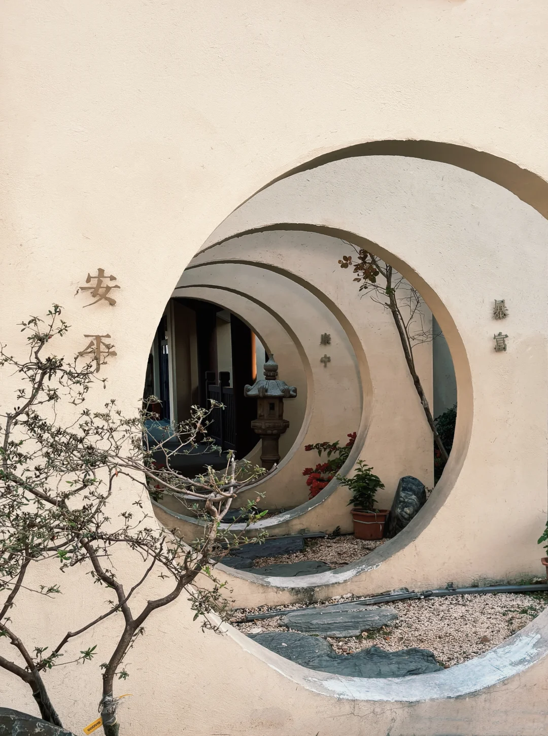 不问清辉美术馆里,宋韵流淌于每个角落:落地窗外框着中式庭园,写着“暴富”“安平”的创意月门让古典雅致与当代诙谐撞了个满怀。
