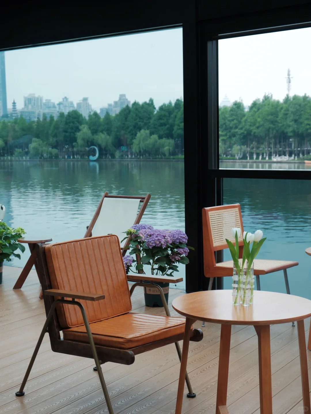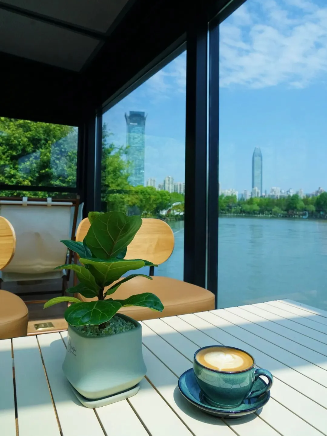 寻一处窗边坐下,咖啡暖手,抬眼便是落地窗外的流水、船只、绿意与天光,都成了一幅从容铺展的画卷。