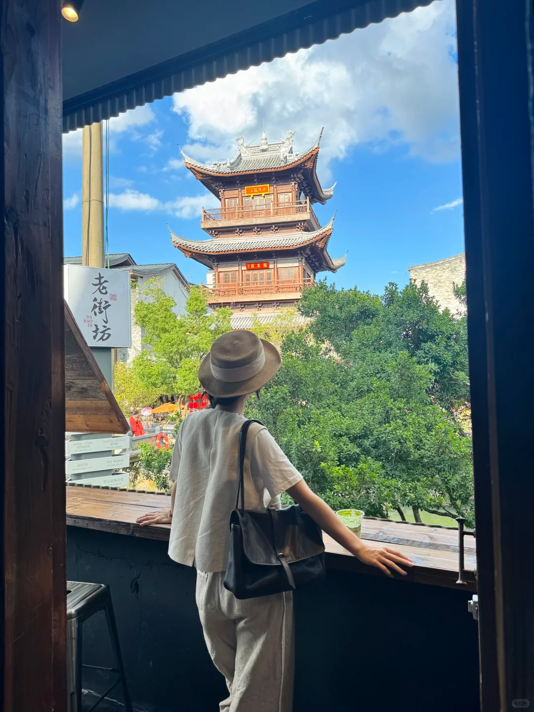 捧一杯抹茶饮品,推开露台的门往外望去,魁星阁正被悄然框入风景里,古今在这一刻温柔相叠。