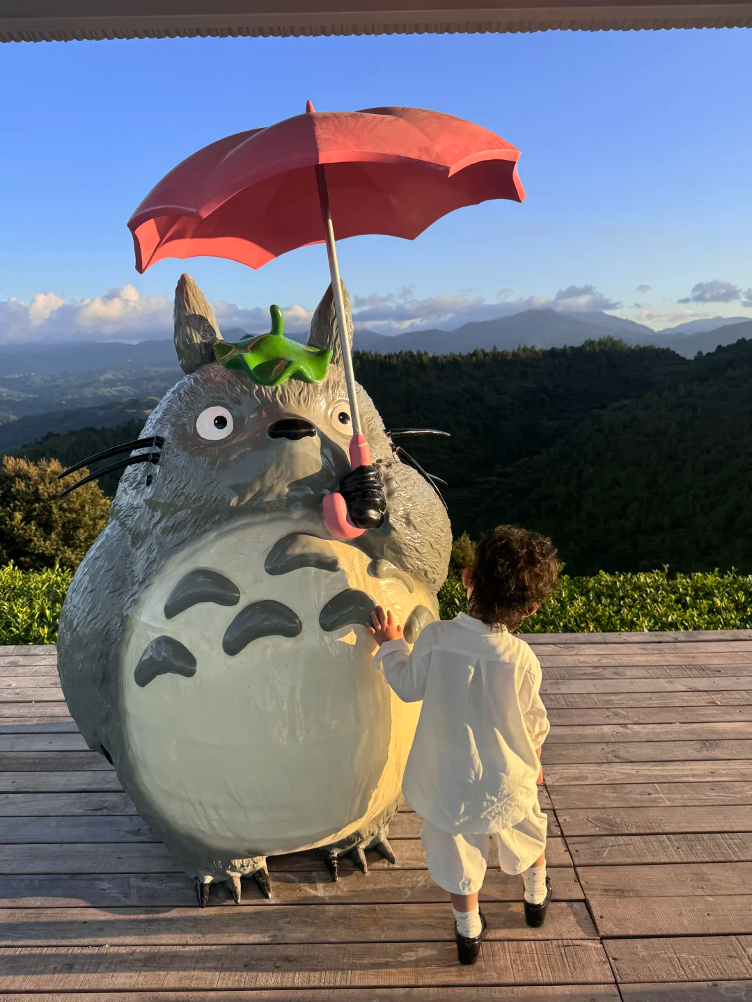 红伞龙猫憨态可掬,“你好泰顺”的问候藏在茶垄间。沿蜿蜒步道漫行,茶山如卷,青翠接天。点一杯咖啡,漫山清风与绿意,皆可饮。