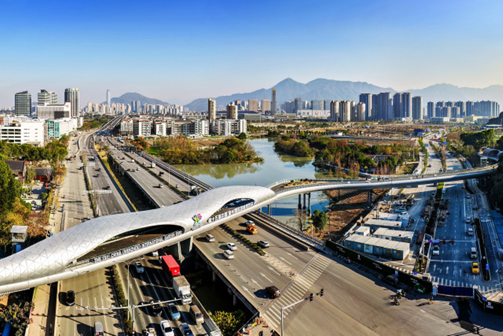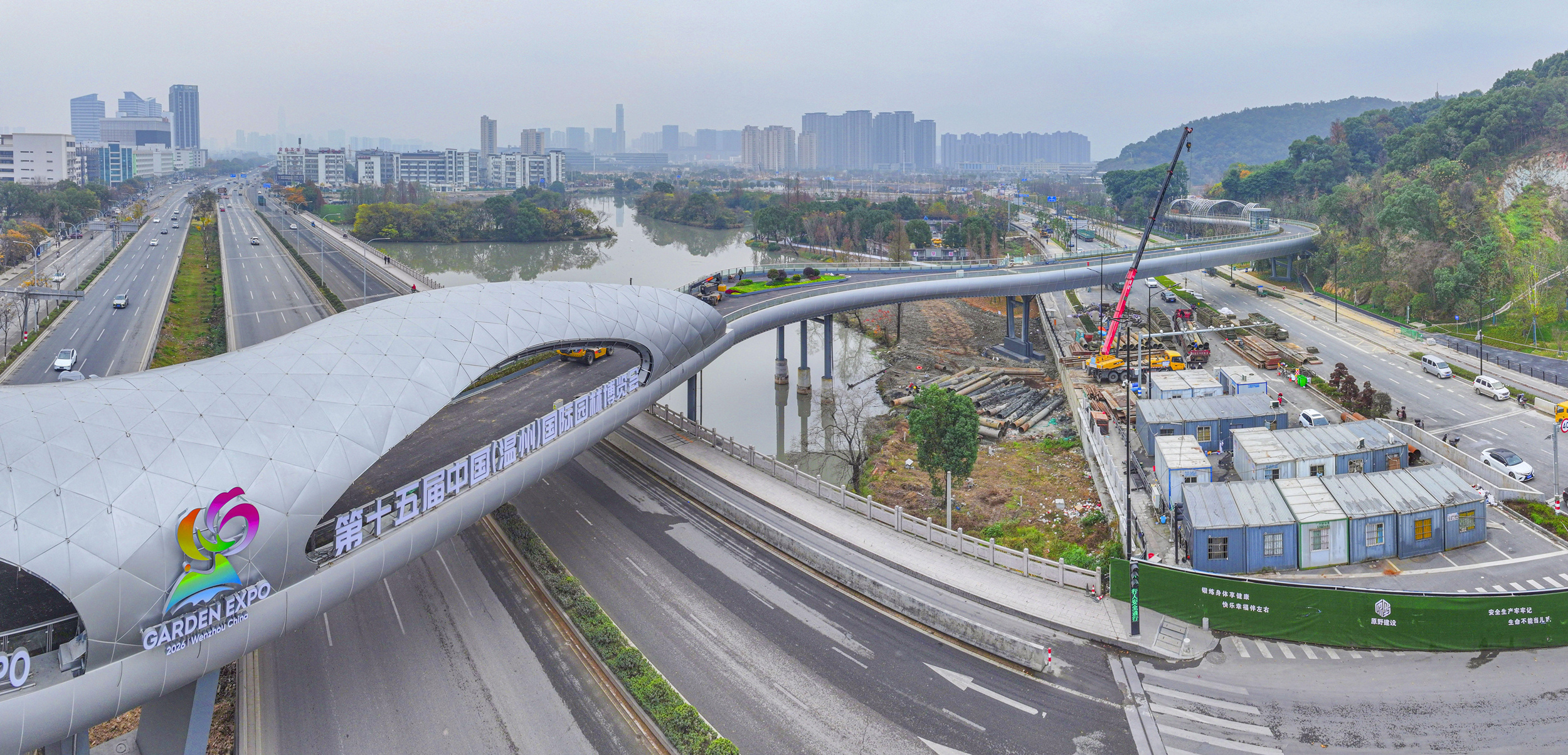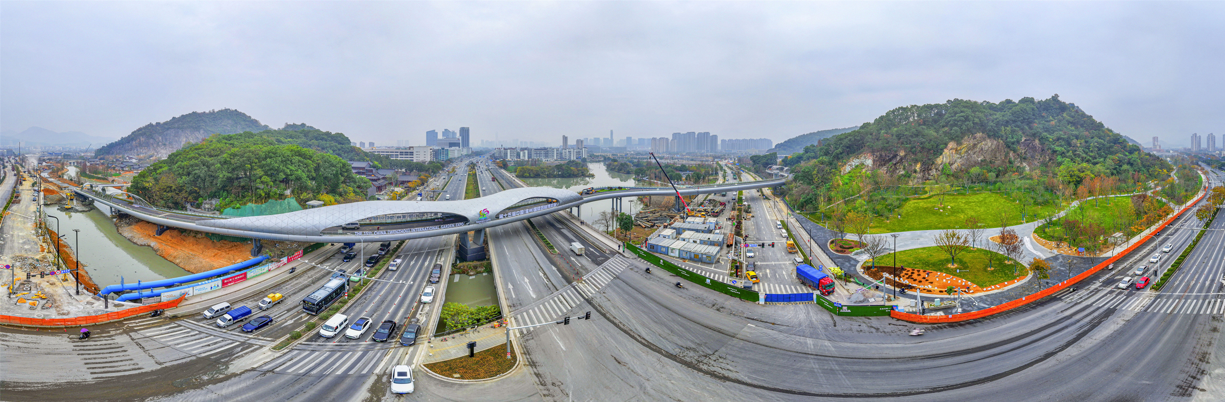 近日,第十五届中国(温州)国际园林博览会关键工程——园博园跨线桥顺利完工。苏巧将/摄