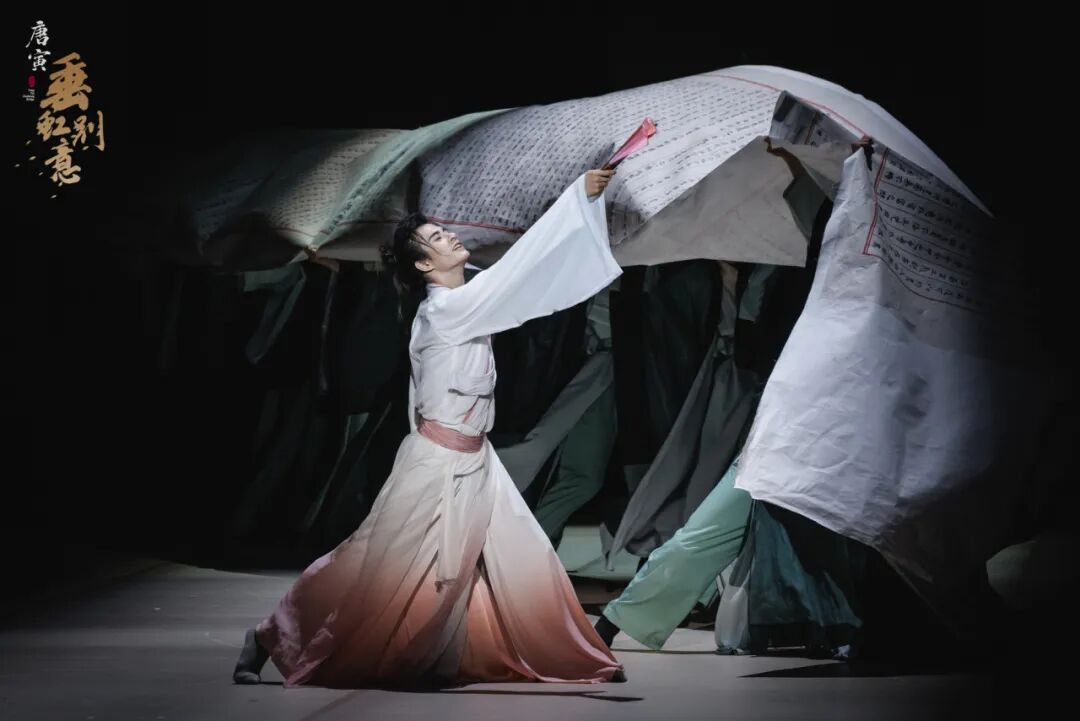青年唐寅的舞姿飘逸迅捷,充满向上的冲击力与自信;科场案发,人生骤变,他的舞步转而凝涩、颤抖,以失衡与跌撞外化内心世界的崩裂。及至晚年,动作回归圆融、舒缓,但充满沉淀的力量。借鉴中国画的“写意”感,用简单而意蕴无穷的肢体线条,表现其疏旷与淡然。