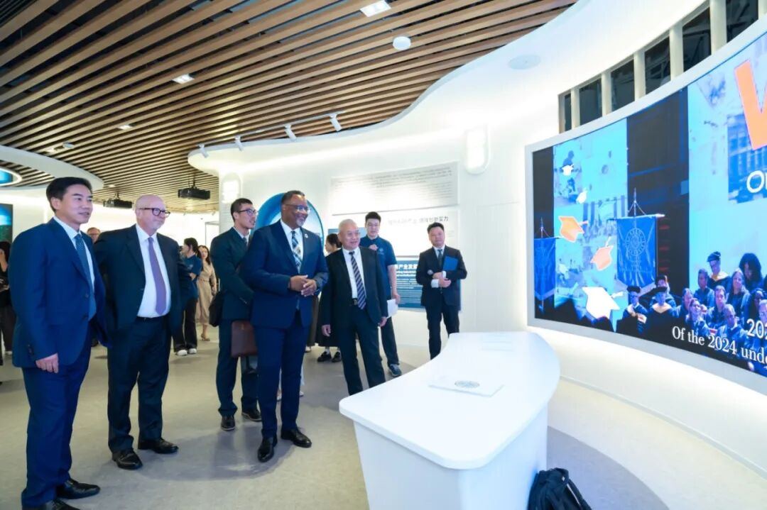 在校史馆为美国肯恩大学校长等外宾讲解 温州肯恩大学供图