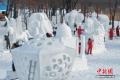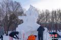 1月9日,第28届中国·哈尔滨国际雪雕比赛在太阳岛雪博会落幕,25件雪雕作品集中亮相。当日,在比赛现场,来自各国的百余位艺术家们正凝神专注做着最后的调整。据了解,本次比赛吸引来自白俄罗斯、比利时、波兰中国等13个国家25支代表队百余位艺术家参赛。图为中国一队选手为作品《噬》做最后调整。中新社记者 赵宇航 摄