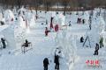 1月9日,第28届中国·哈尔滨国际雪雕比赛在太阳岛雪博会落幕,25件雪雕作品集中亮相。当日,在比赛现场,来自各国的百余位艺术家们正凝神专注做着最后的调整。据了解,本次比赛吸引来自白俄罗斯、比利时、波兰中国等13个国家25支代表队百余位艺术家参赛。图为俄罗斯叶卡捷琳堡队选手为作品《森林的旋律》做最后调整。于琨 摄