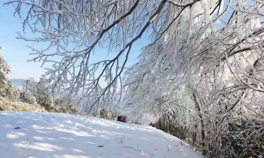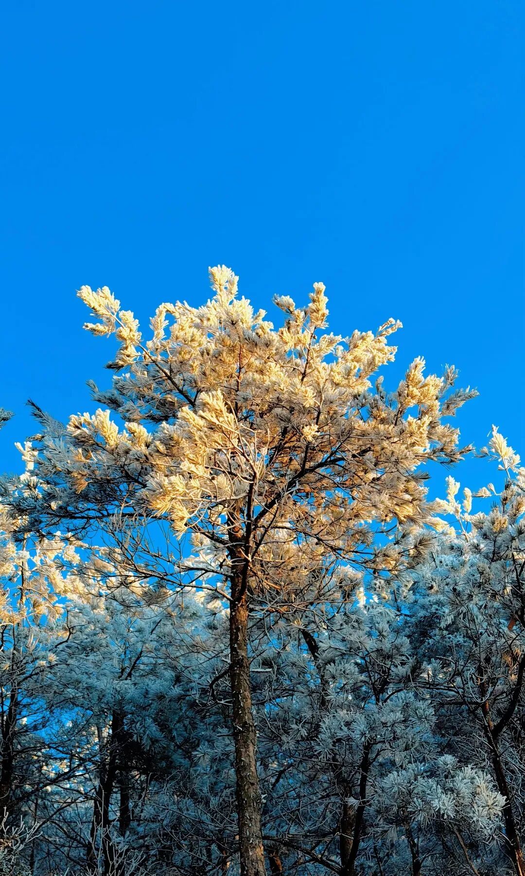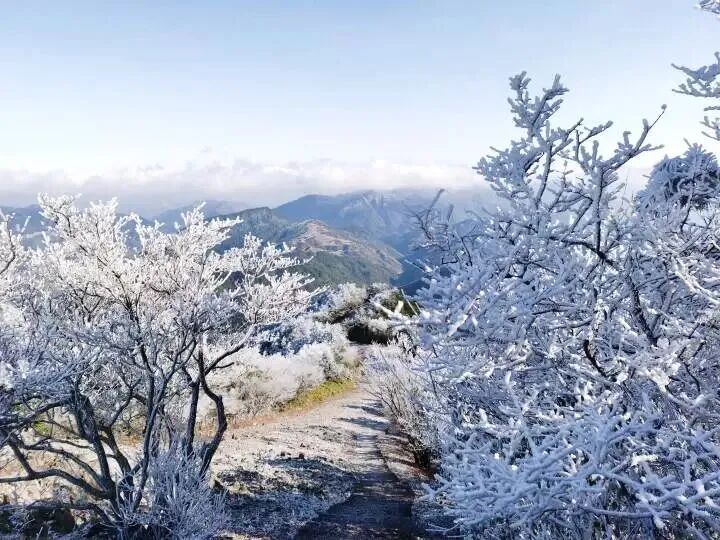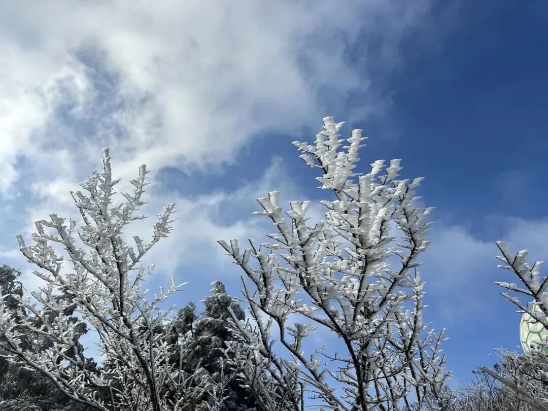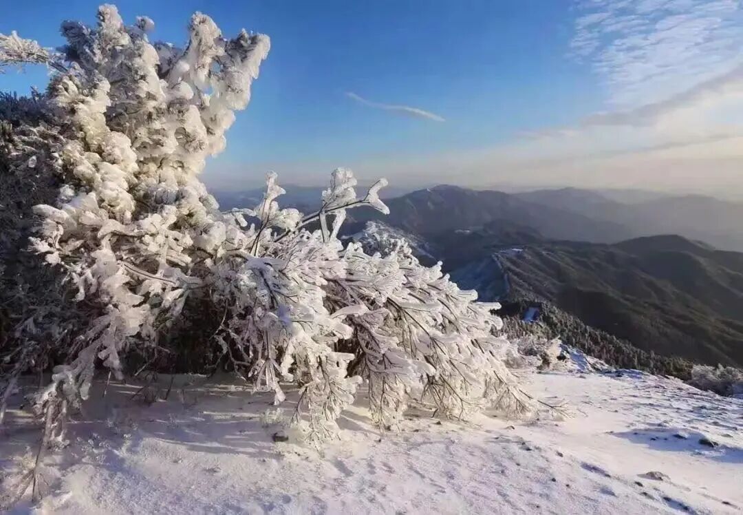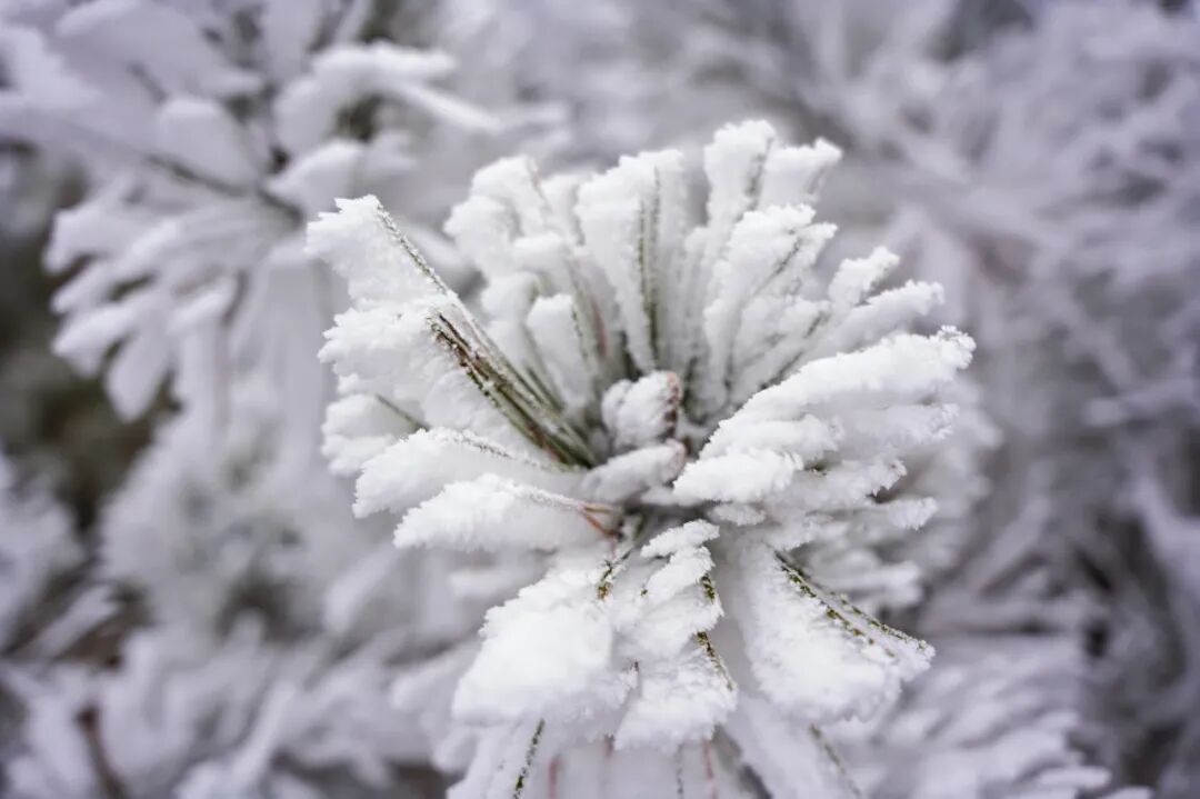 雾凇俗称树挂,是低温时空气中的水汽直接凝华,或过冷雾滴直接冻结而成,是非常难得的自然奇观。