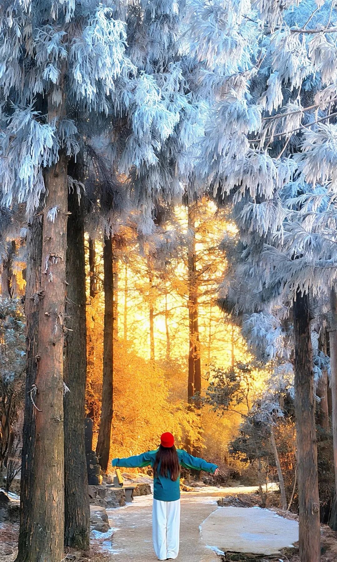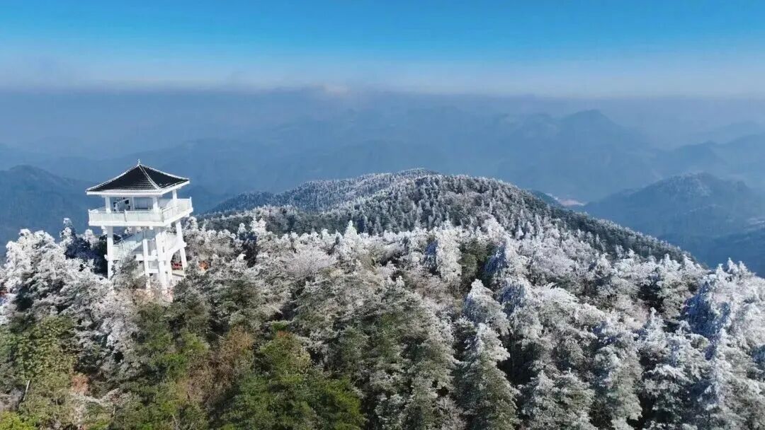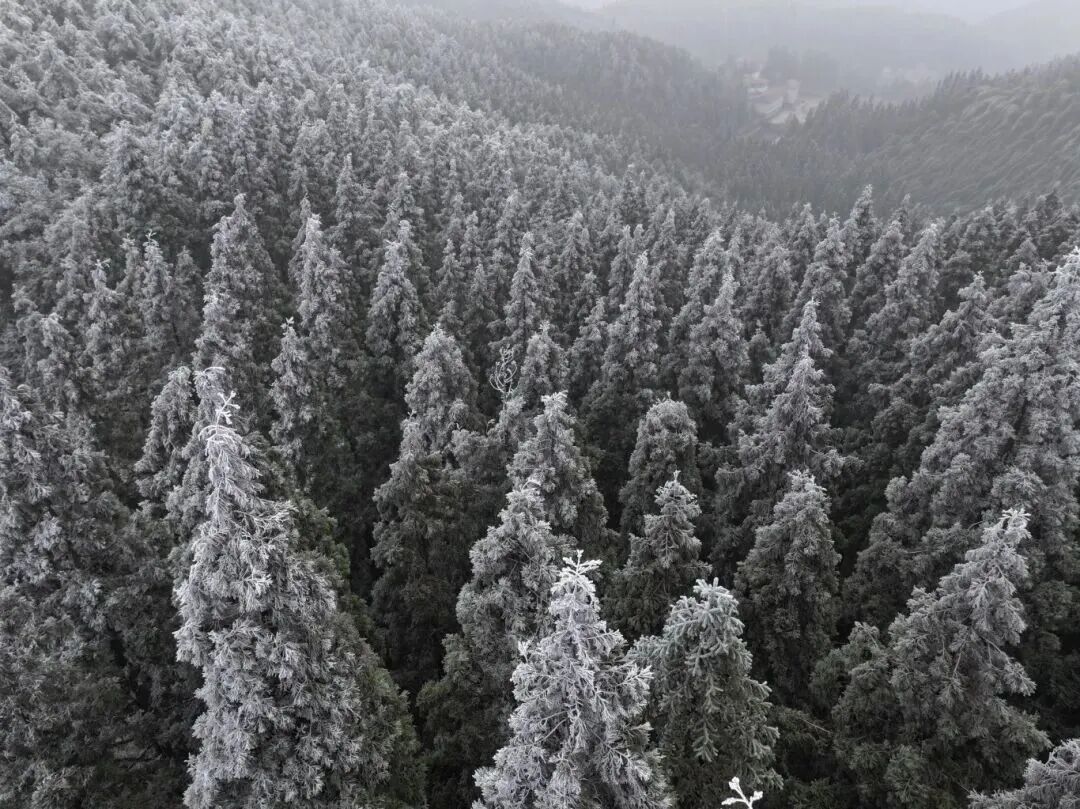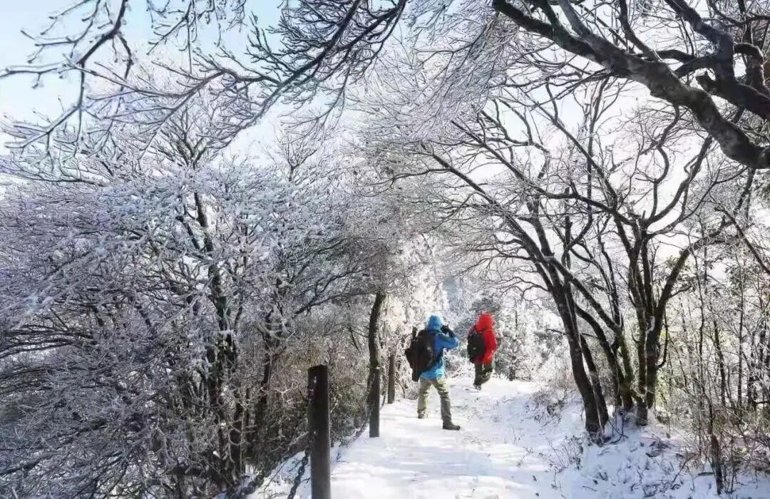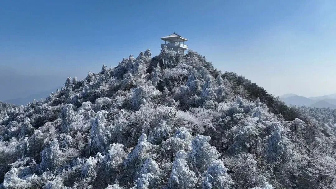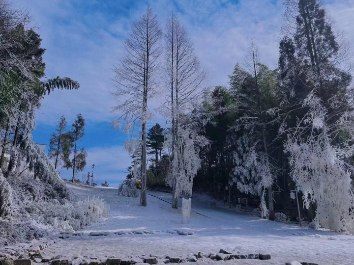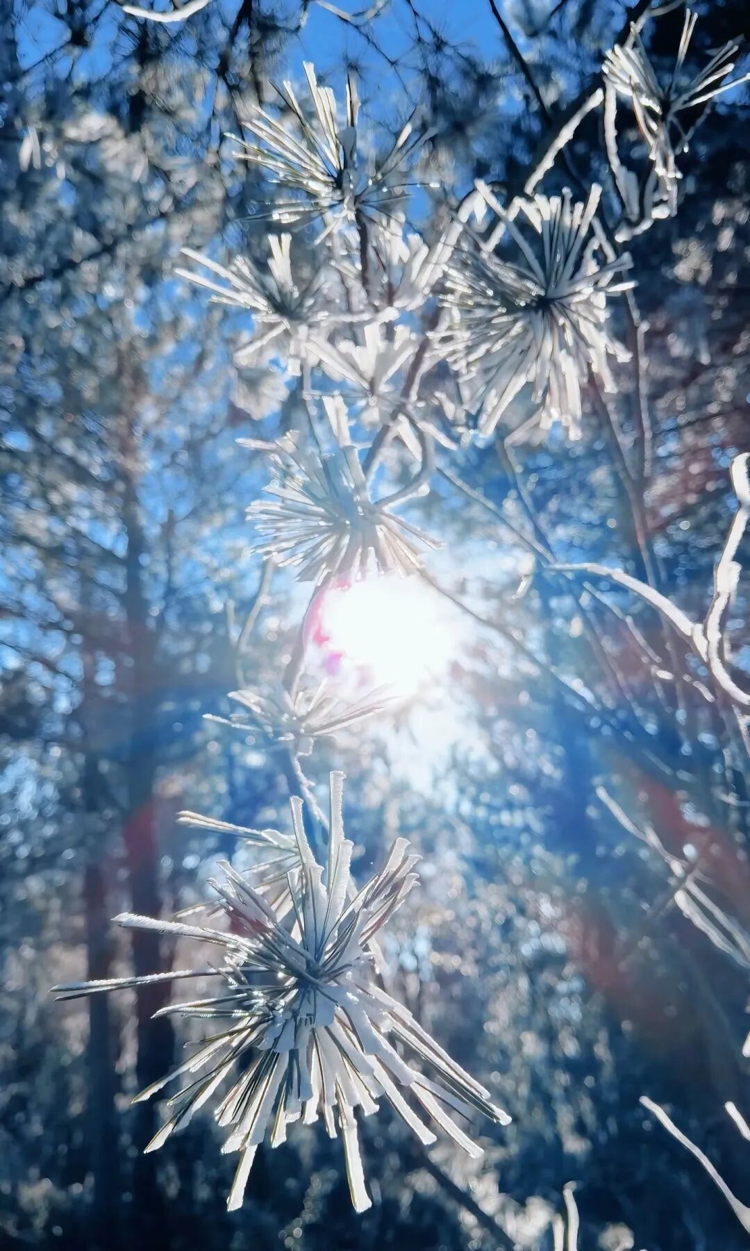 雾凇俗称树挂,是低温时空气中的水汽直接凝华,或过冷雾滴直接冻结而成,是非常难得的自然奇观。