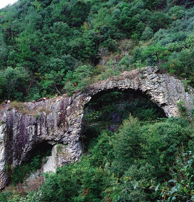 1990年10月鲤溪乡郑家庄天然石桥。