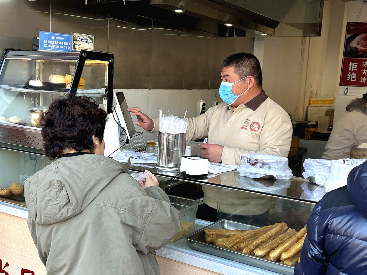 五马街道队守门员胡克坚经营着一家包子铺