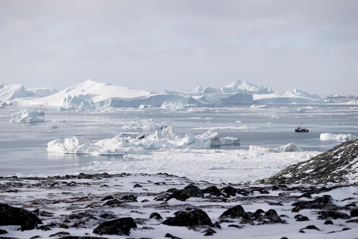 这是2025年3月22日在丹麦自治领地格陵兰岛迪斯科湾拍摄的冰山。新华社记者赵丁喆摄