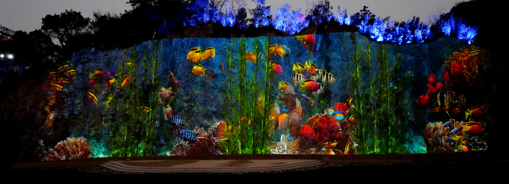 当夜幕如同轻纱般悄然降临,崖壁上的树木被多彩的光影温柔地照亮,仿佛每一片叶子都被赋予了思想。它们在微风中轻轻摇曳,光影交错,宛如仙境。此时,投影机缓缓打开,那崖壁瞬间化为一面巨大的屏幕,一场视觉盛宴就此拉开。巨龙腾飞、凤凰展翅……现场测试播放的样片已初步展现了这片巨幕的视觉潜力。据了解,在温州园博园正式展会期间,这里将成为一个多功能的户外影院与音乐舞台,为观众带来更富创意、更具沉浸感的视听盛宴。