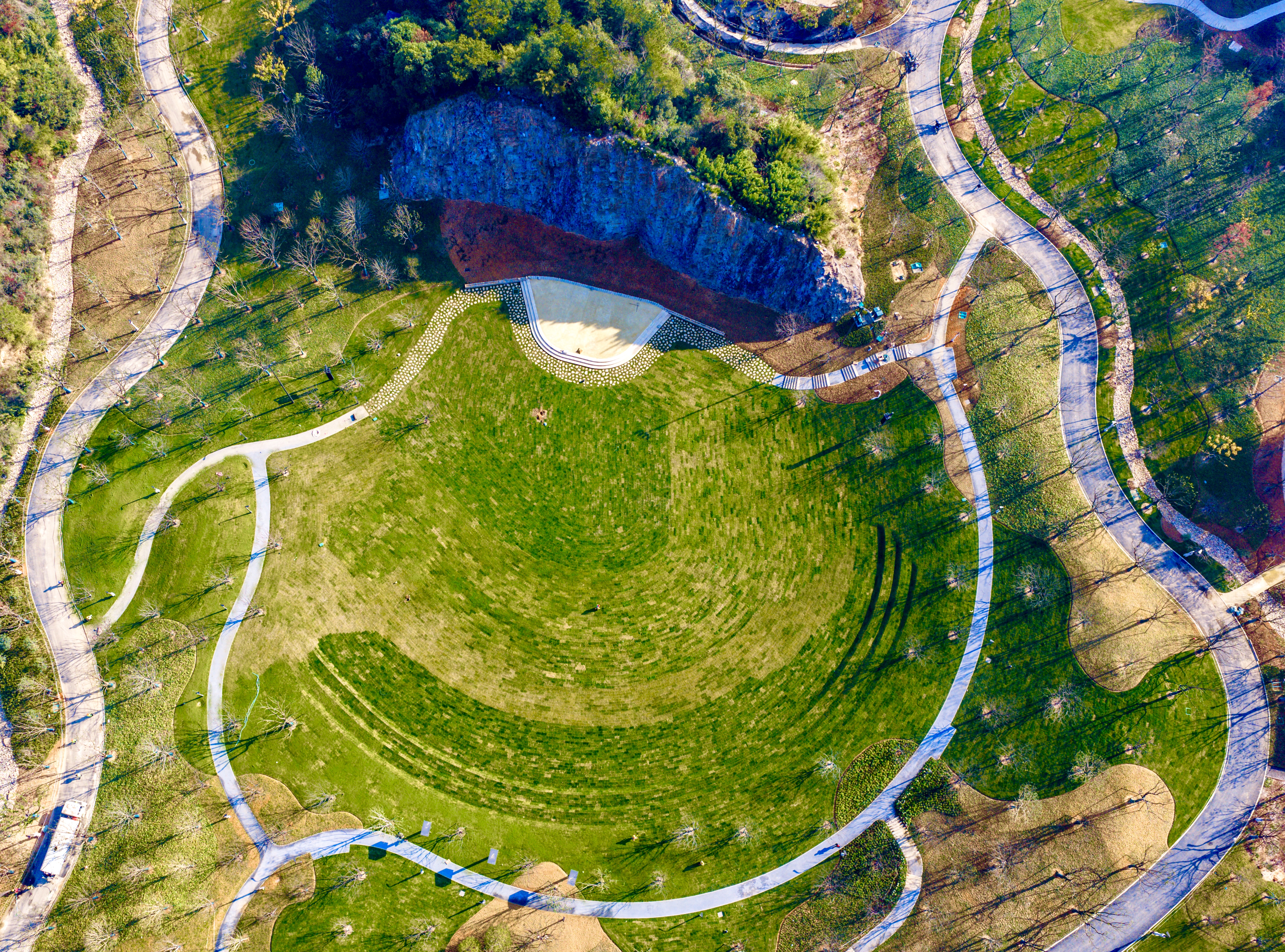 据市城发集团所属园博园攻坚项目三标段攻坚组成员姜通林介绍,崖壁森林剧场打造的是与自然和谐共生的一个生活场景,利用原有的崖壁和矿坑,通过生态修复,结合现代的光影科技打造出一个光影景点。白天,这里可以举办表演活动或草坪聚会活动;夜晚,利用东侧现状崖壁,采用3台45000流明投影机,呈现画面1100平方米的室外巨幕,结合灯光、激光、雾森等多媒体技术手段,打造崖壁剧场,演绎独特的植物秘境。在正式开园后,将会成为南园的一个打卡点。