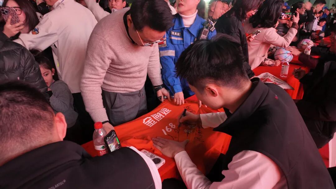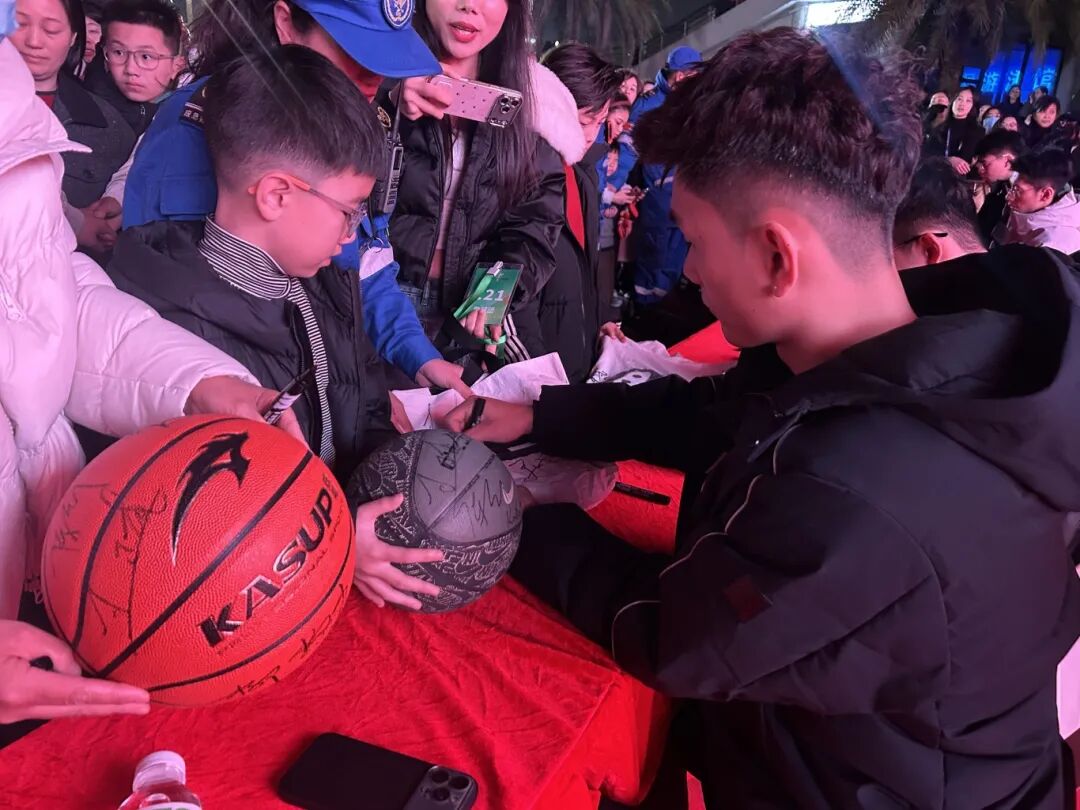 随后,球员们开始为球迷签名,球迷们有序排队,眼中闪烁着激动的光芒。当拿到偶像签名的那一刻,有的球迷小心翼翼地将签名物品抱在怀中,有的则激动地与球员合影,记录下这珍贵瞬间。“南哥,你们是最棒的!”“下赛季,我们继续陪你们战斗!”球迷们纷纷向球员们表达心声。