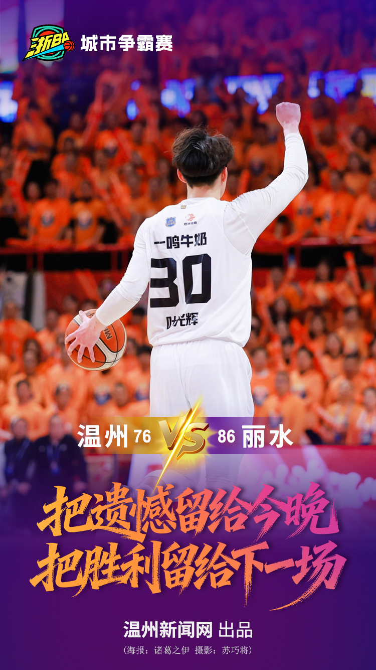 温州网讯(记者 温婉)1月20日晚,浙BA城市争霸赛四强对决在温州体育中心体育馆擂响战鼓,现场助威声浪如潮。温州队坐镇主场,与来访的丽水队展开一场激烈角逐。开场哨响,双方便陷入激烈搏杀,攻防往来如电,比分交替攀升,战场一度难分高下。下半场,丽水队抓住时机连续打出反击。尽管末节温州队全军奋力一搏,发动勇猛反扑,却终究未能挽回战局。终场哨响,温州队以76:86的比分憾负对手。