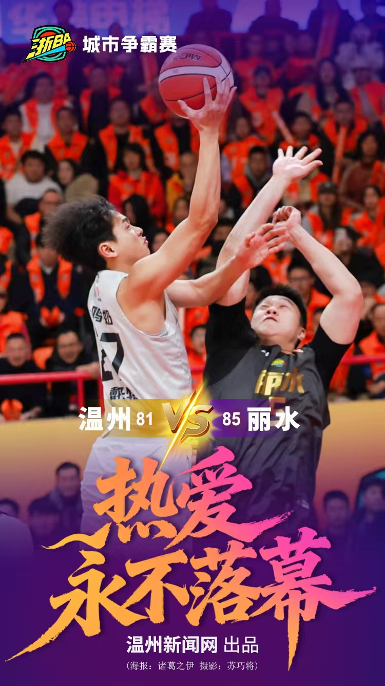 温州网讯(记者 温婉)1月24日晚,温州体育中心体育馆内,浙BA城市争霸赛半决赛第三场生死战举行。主场作战的温州队历经四节和加时赛苦战,最终以81:85憾负,总比分1:2止步半决赛,结束本赛季征程。虽未能更进一步,但球队从开赛至今展现出的团结协作、敢打敢拼与永不言弃的精神,赢得所有球迷的敬意。温州篮球,步履不停;我们来年再战,未来可期!