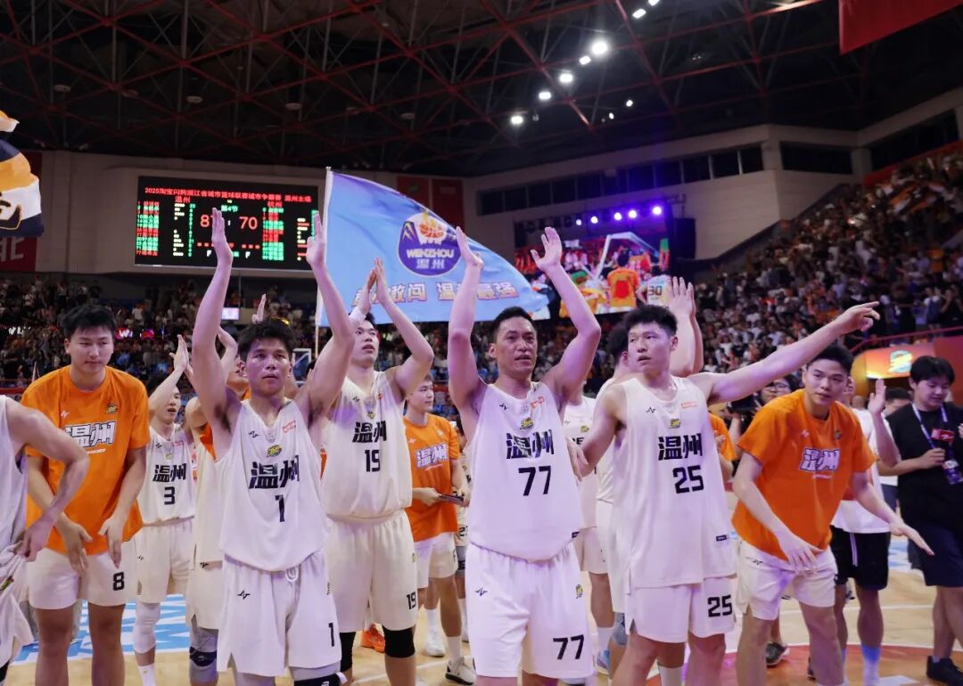 是敢拼敢闯的城市精神——早在浙BA开赛之初,温州队亮出的口号就是“敢拼敢闯”,这四个字虽略显“常规”,却完美契合了温州队的奋斗之路。实际上,温州篮球在省内一直属于中等偏上,正是团结协作、敢拼敢闯的精神,才让他们创造了17连胜,小组赛19胜1负的傲人战绩。草根球员们在赛场上挥洒的每一滴汗水、完成的每一次上篮、展现的每一刻顽强,都为温州这座城市注入强大的正能量!输赢并不是最重要的,拼搏过,你们都是城市英雄!