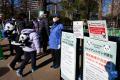 1月25日,游客在日本东京上野动物园参观大熊猫后伤心地离开。新华社记者 贾浩成 摄