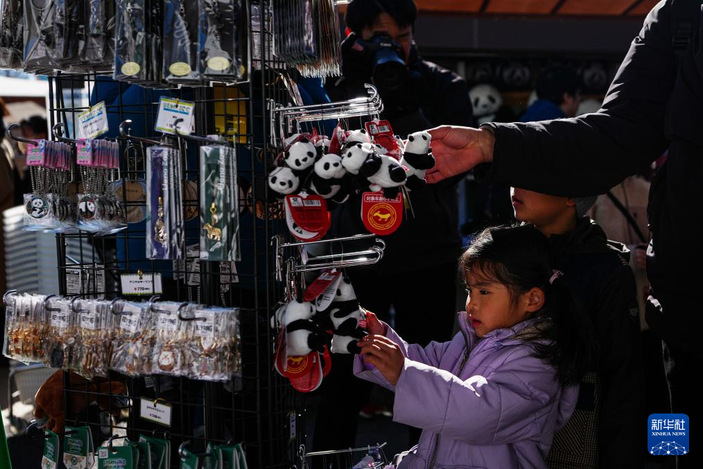 1月25日,游客在日本东京上野动物园挑选大熊猫纪念商品。新华社记者 贾浩成 摄