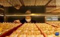 1月26日,江苏省连云港市连云区一家黄金店店员在整理黄金饰品。新华社发(王春 摄)