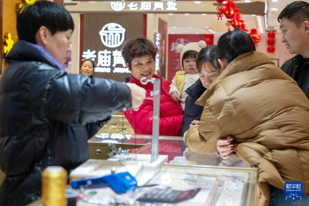 1月26日,市民在浙江省湖州市长兴县雉城街道一家商场选购黄金饰品。新华社发(谭云俸 摄)