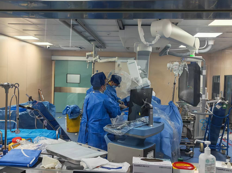 ECMO转流之后,患者心脏完全停跳、冠状动脉已无前向血流。随后,在与家属进行详细地术前告知后,林斌准备冒险进行手术疏通血管。记者了解到,手术中,因为患者无心跳,导致造影剂无法流动,稍有不慎便可能引发心脏破裂等致命风险。医生必须胆大心细,凭借丰富的经验与精准决断开展手术。在ECMO维持生命体征的基础上,精准定位狭窄血管,成功植入支架疏通血管后进行心肺复苏,使患者恢复心律,安全下台。