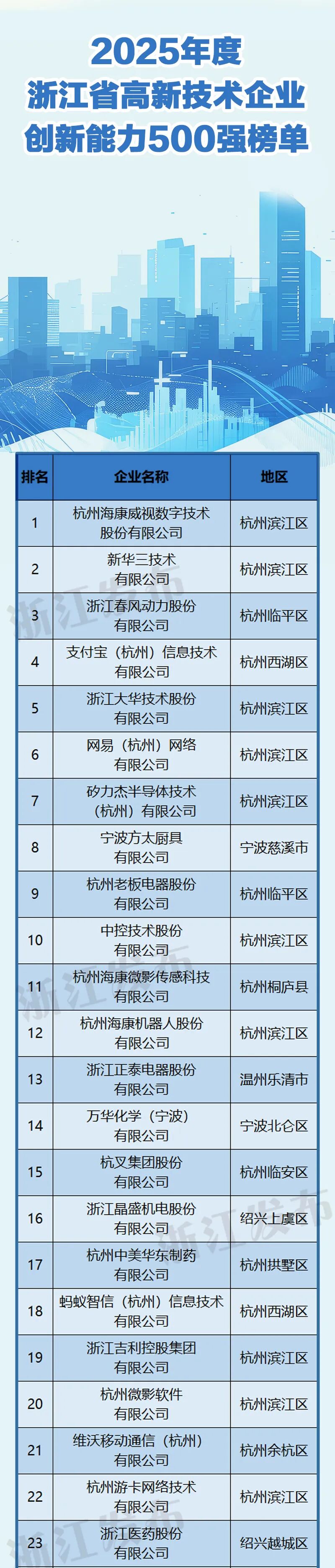 为推动科技创新和产业创新深度融合,培育发展新质生产力,引导高新技术企业(以下简称高企)强化创新能力、发挥示范引领作用,受浙江省高新技术企业协会委托,省科技信息研究院、省工业和信息化研究院组织开展全省高新技术企业创新能力评价工作,评选出2025年度浙江省高新技术企业创新能力500强。