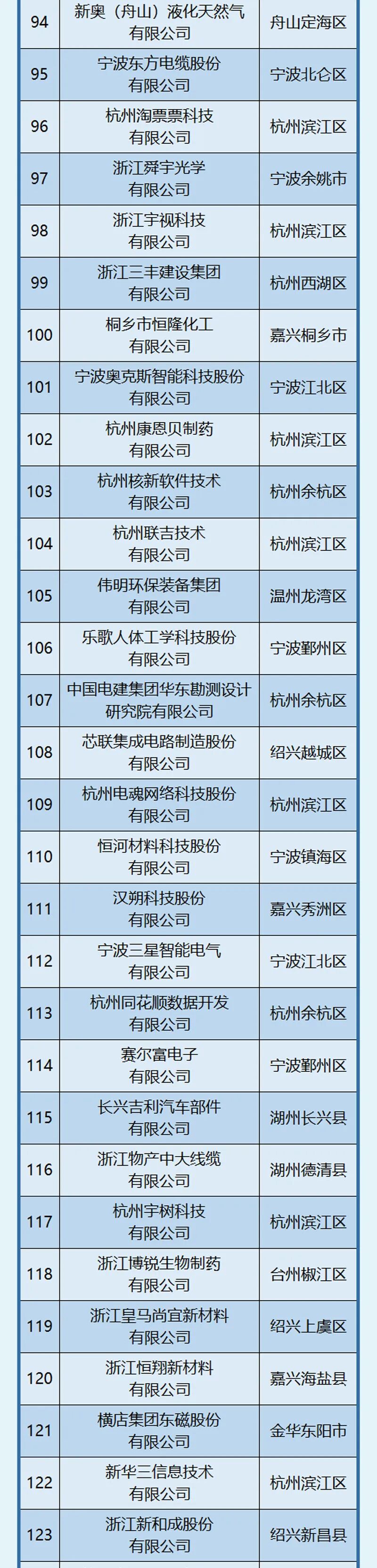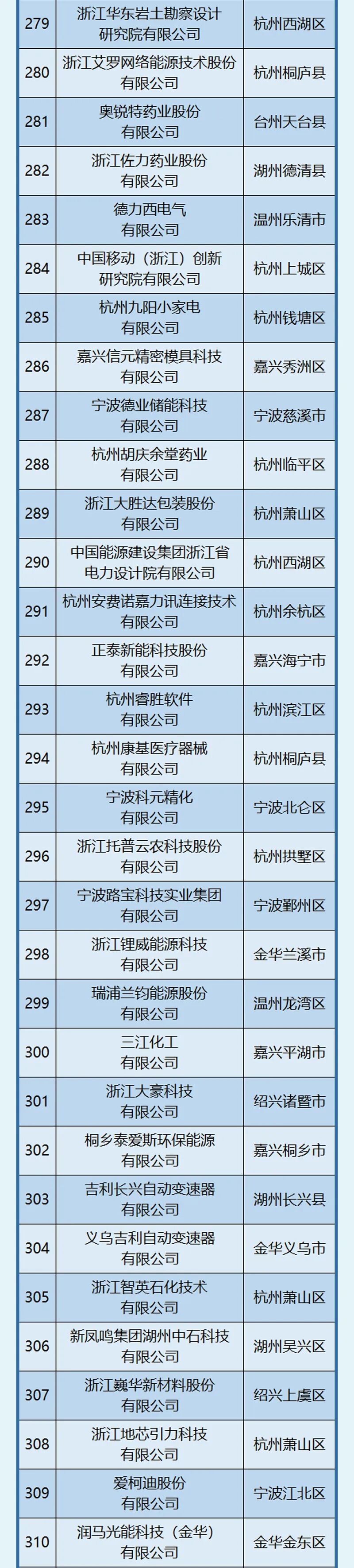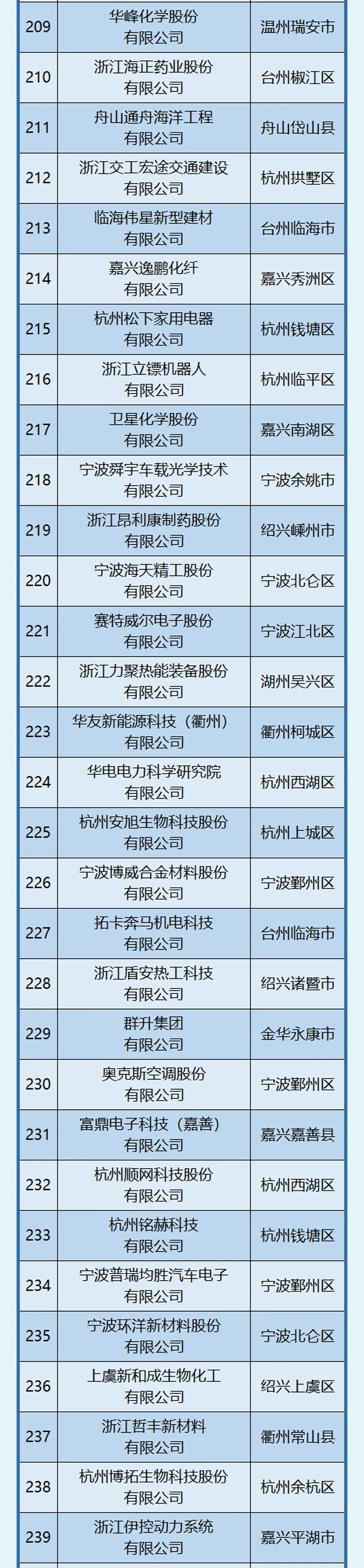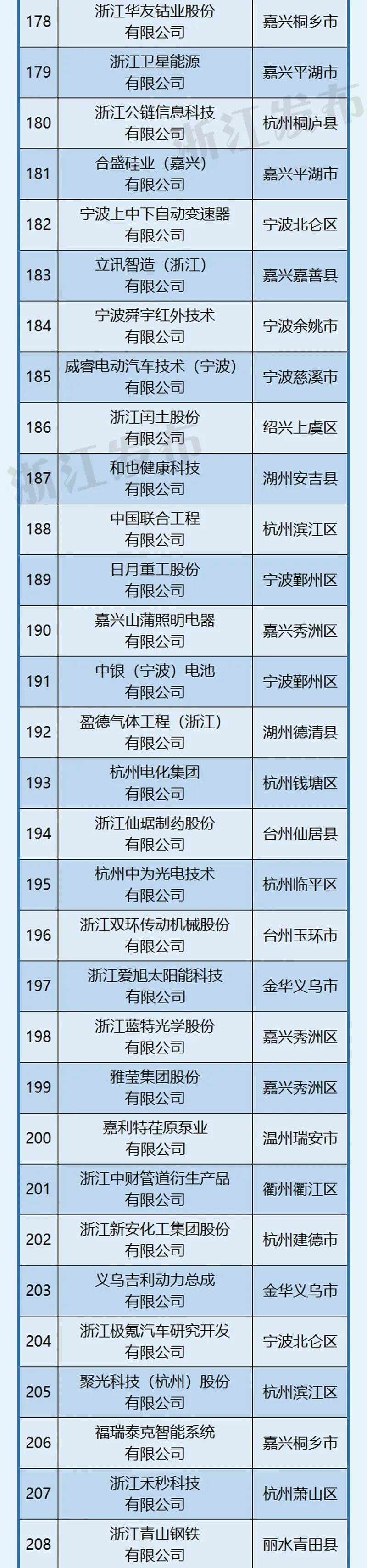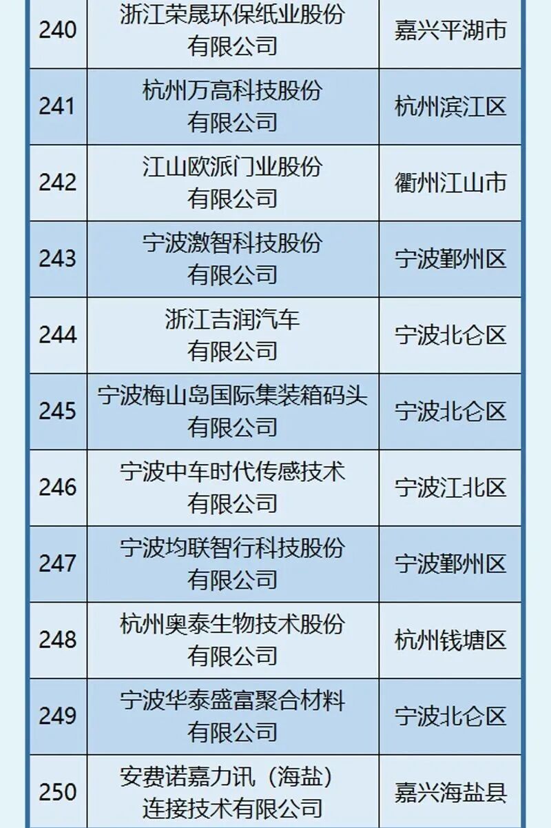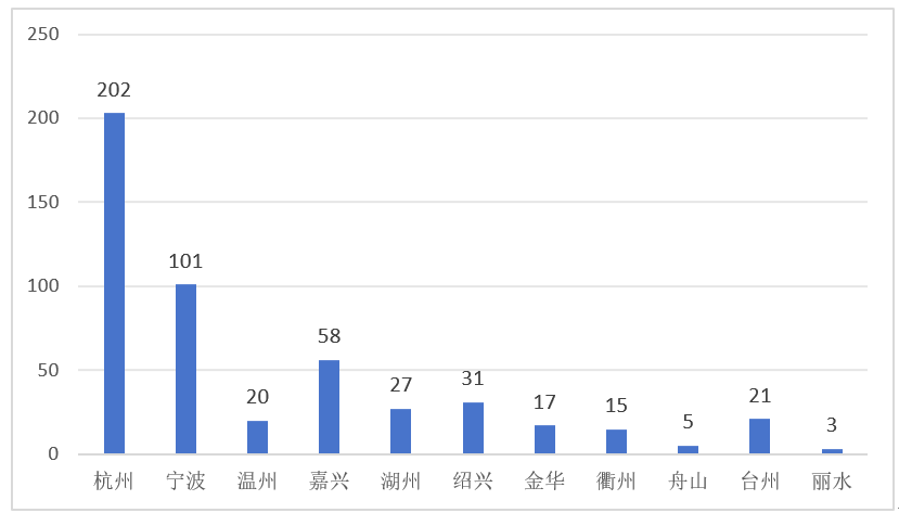 杭州、宁波引领作用明显,杭州以202家位居榜首,宁波101家紧随其后。此外,嘉兴市入选58家,位居第三位。