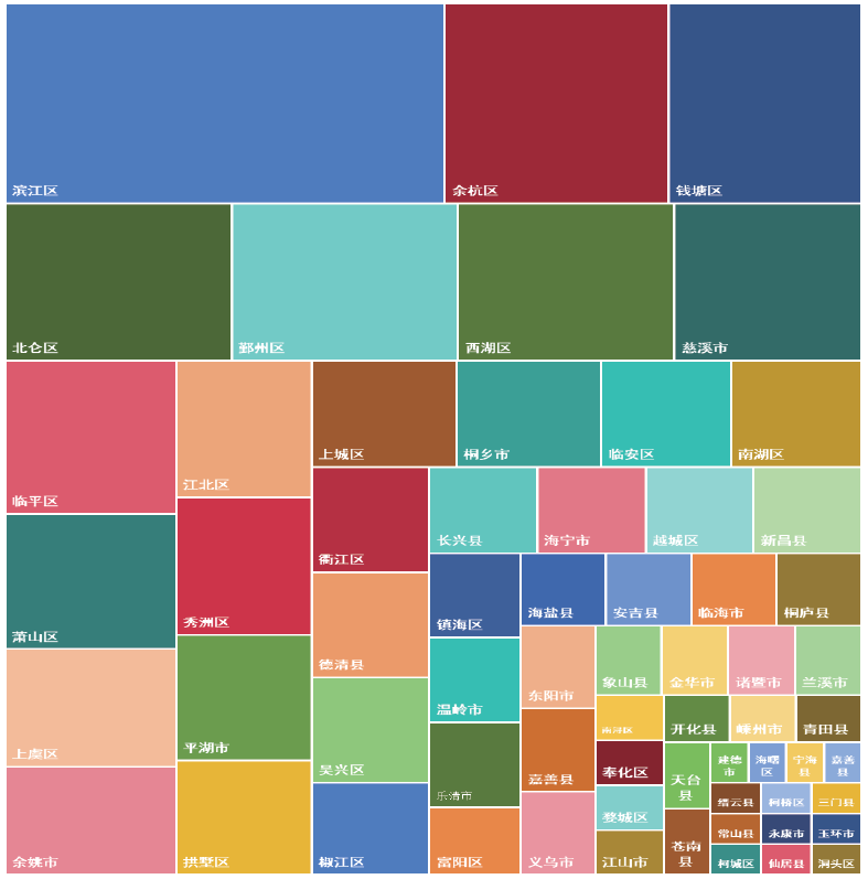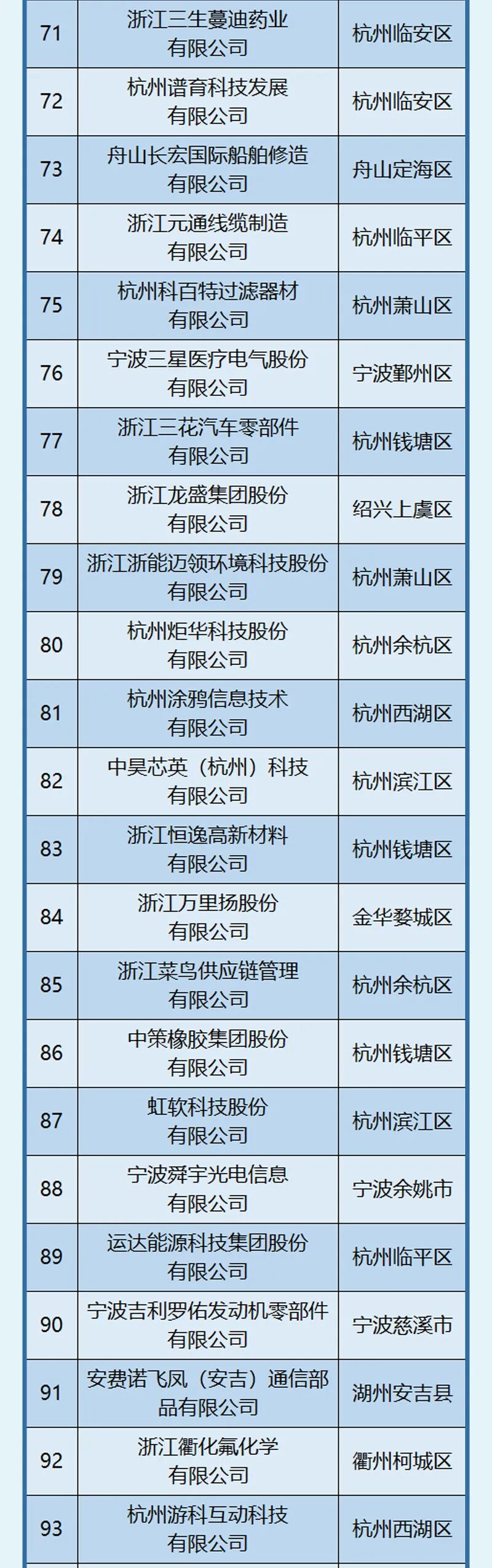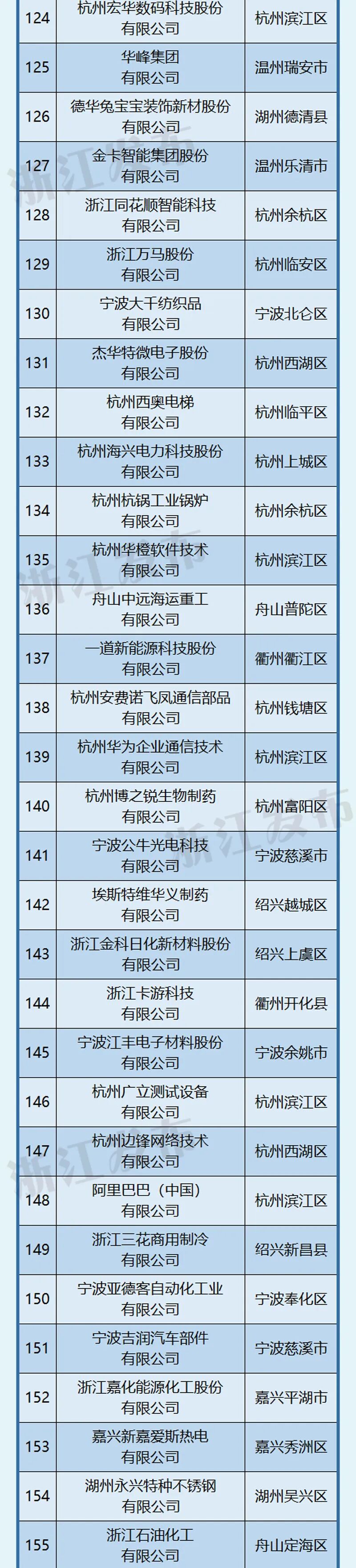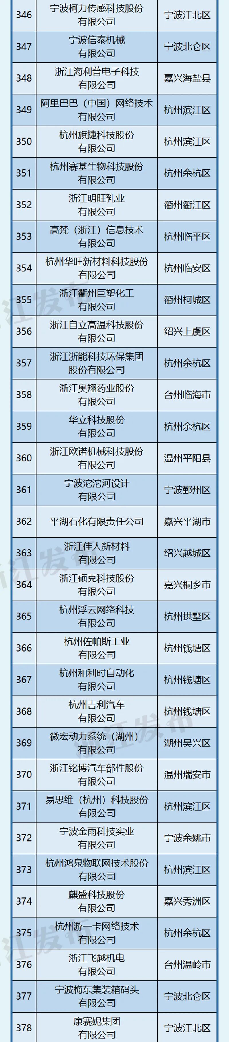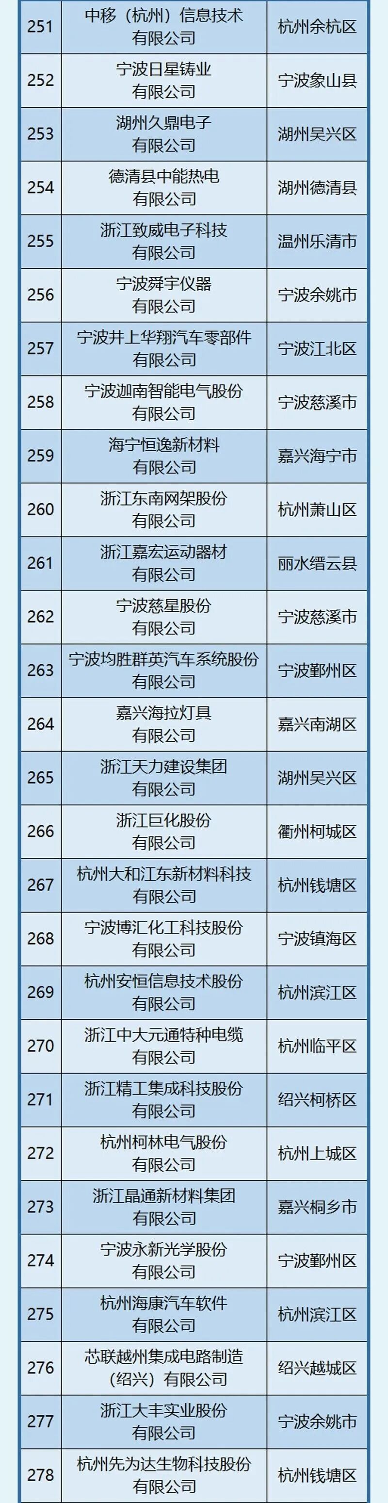杭州、宁波引领作用明显,杭州以202家位居榜首,宁波101家紧随其后。此外,嘉兴市入选58家,位居第三位。
